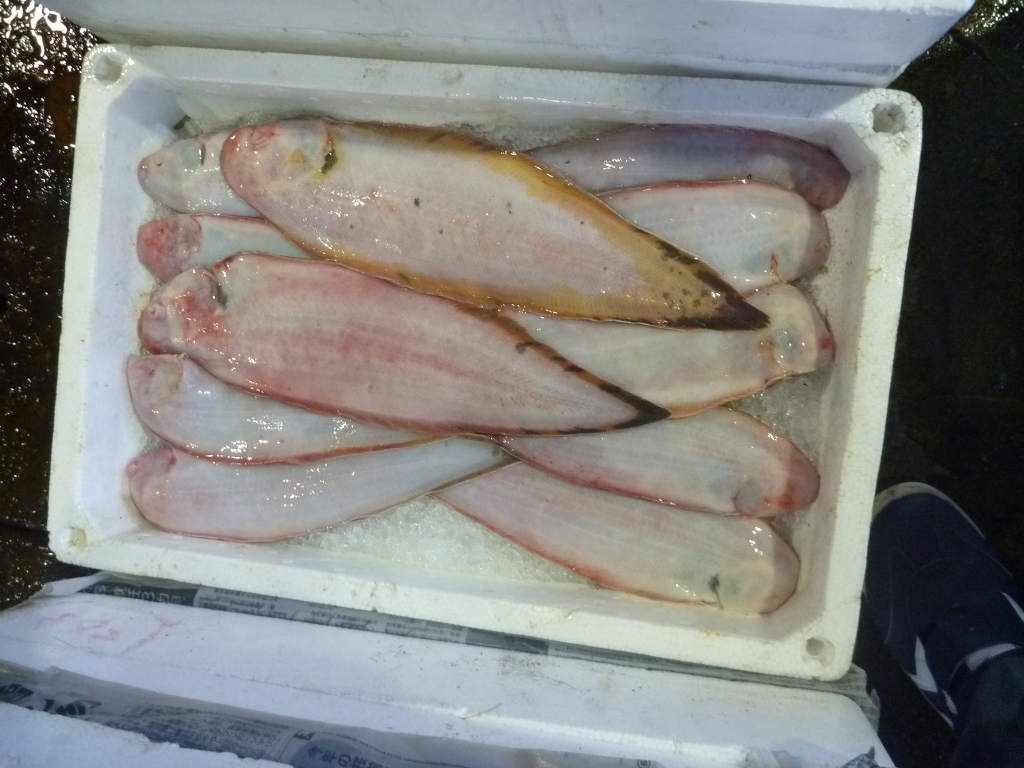 主なものは、マダイ、チヌ、メイタ、ゲタ、マナガツオ、キス、コチゴ、シマゲタ、小フグ、