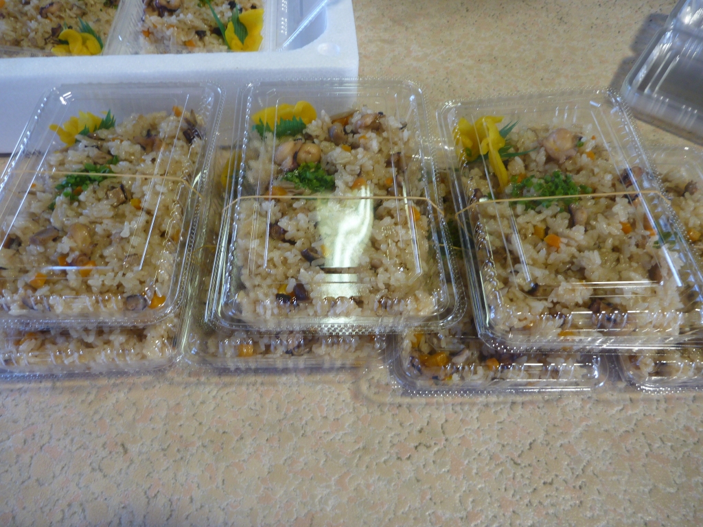 たこ飯、エビ・タコ・イカ・フグ等のてんぷらです。