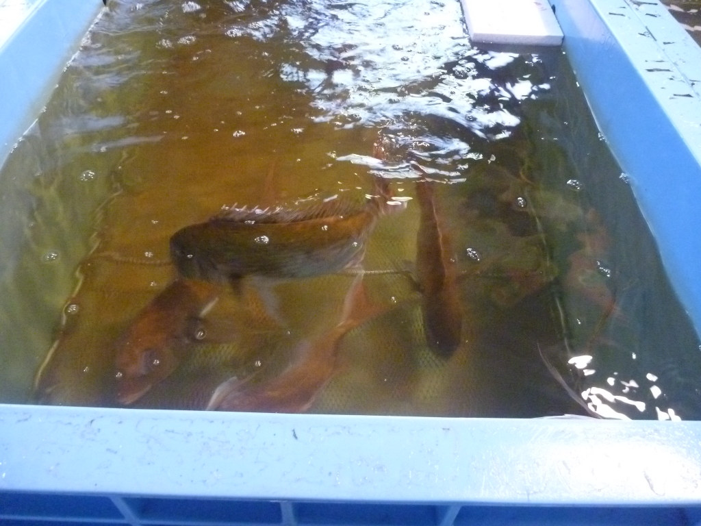 当番の漁業者は、午後3時に出漁しました。 明日は、旬の魚を取り揃えてお待ちしています。 おさかなふれあいプール