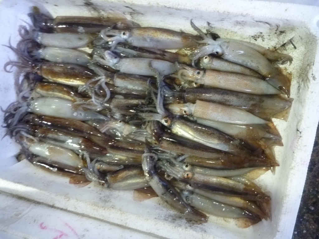 ベイカ、スルメイカ、小エビ、ワタリガニ、タチガイ、ニシ貝等です。