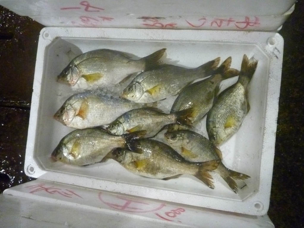 主なものは、マダイ、チヌ、ゲタ、メイタ、小フグ、小アジ、キス、メバル類、タナゴ、