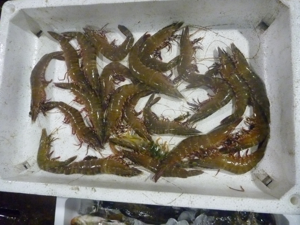 小エビ、クルマエビ、モエビ、ワタリガニ、ニシ貝、タチガイ(殻つき)等です。