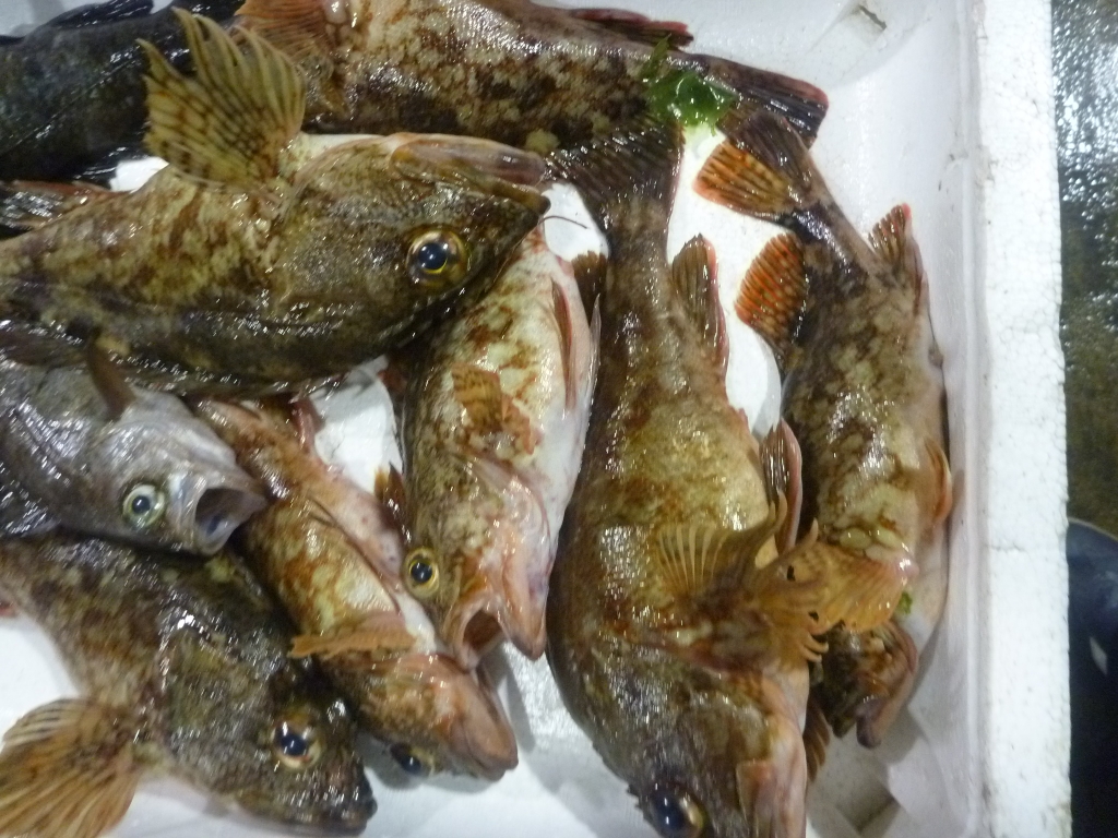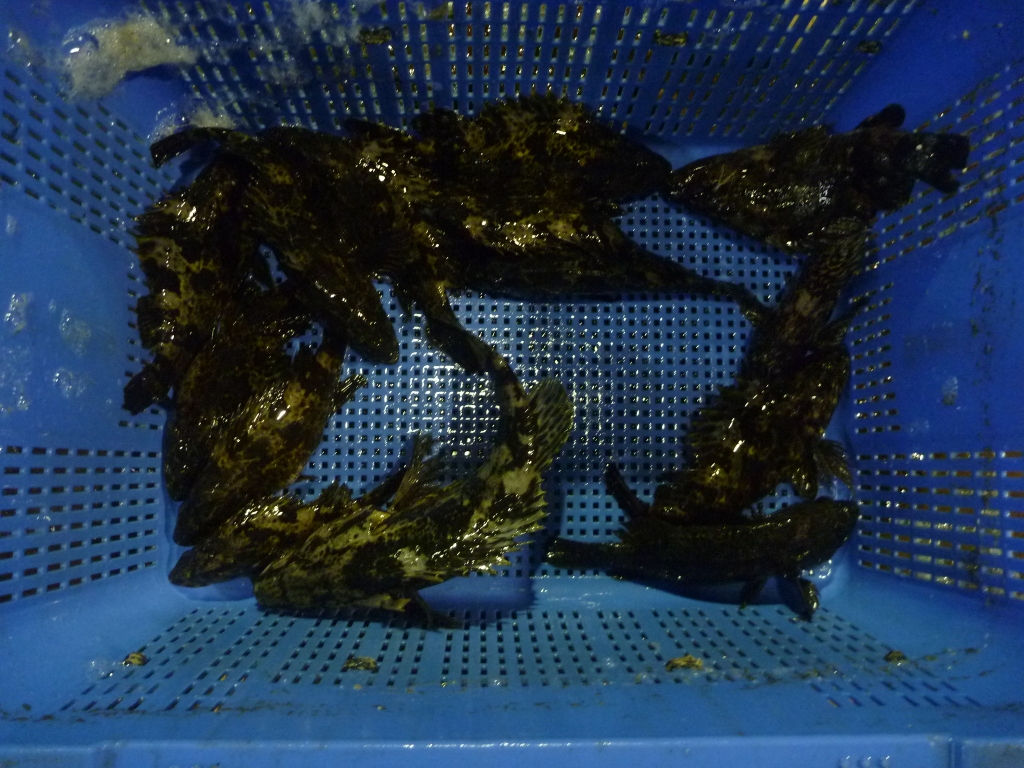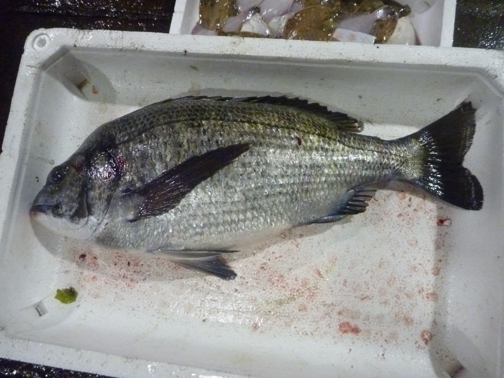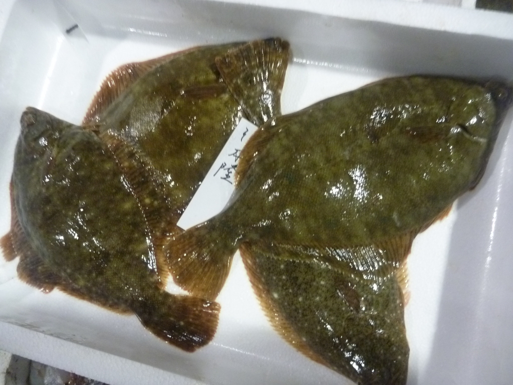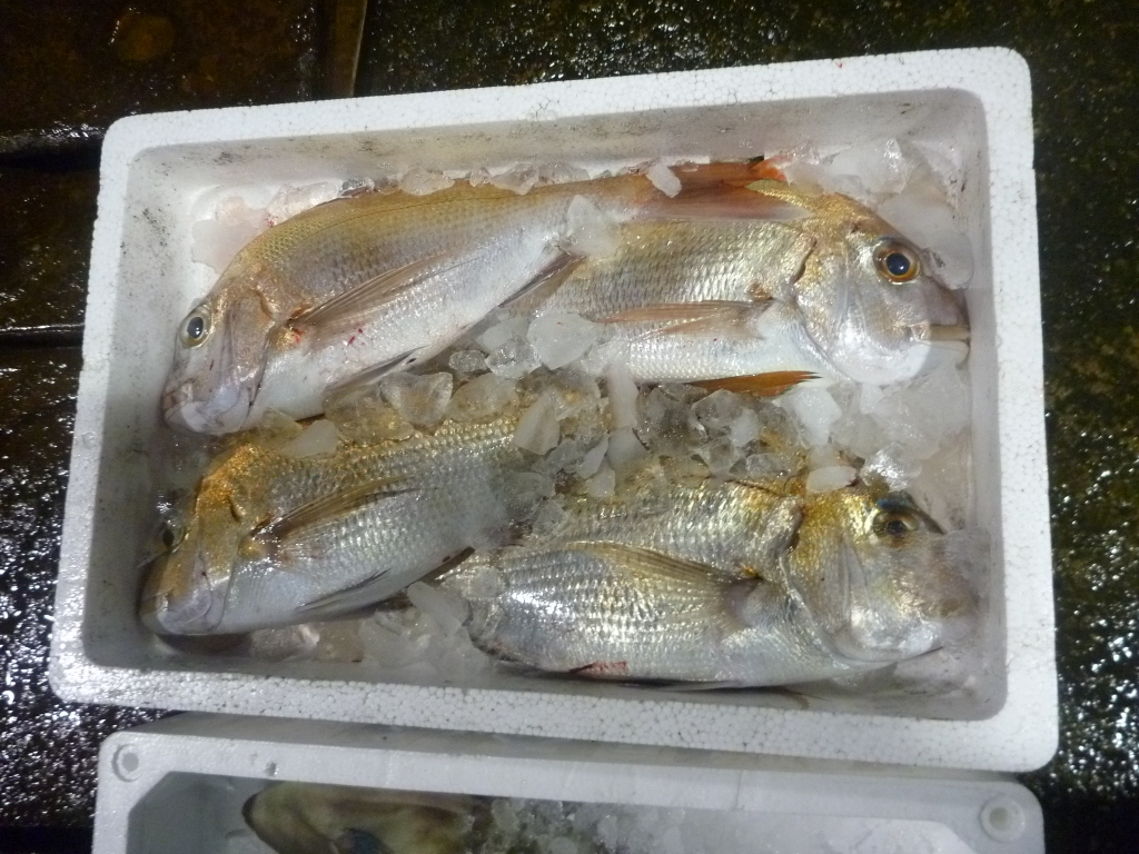 市場に出ている主な魚は、マダイ、メイタ、チヌ、ヒラメ、ゲタ、メバル類、