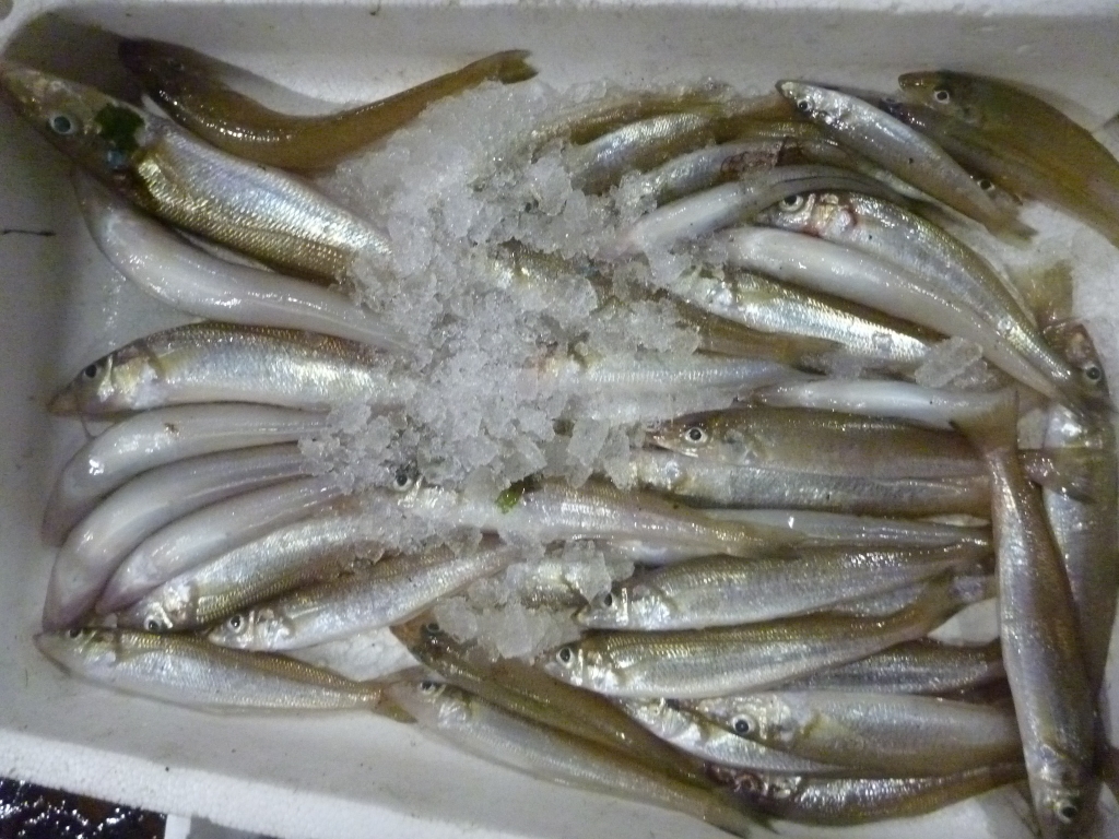 キス、ハネ、オコゼ、マコガレイ、アナゴ、イイダコ、ベイカ、小エビ、タチガイ、ニシカイ、