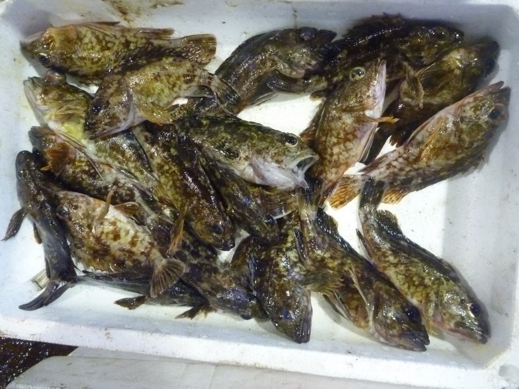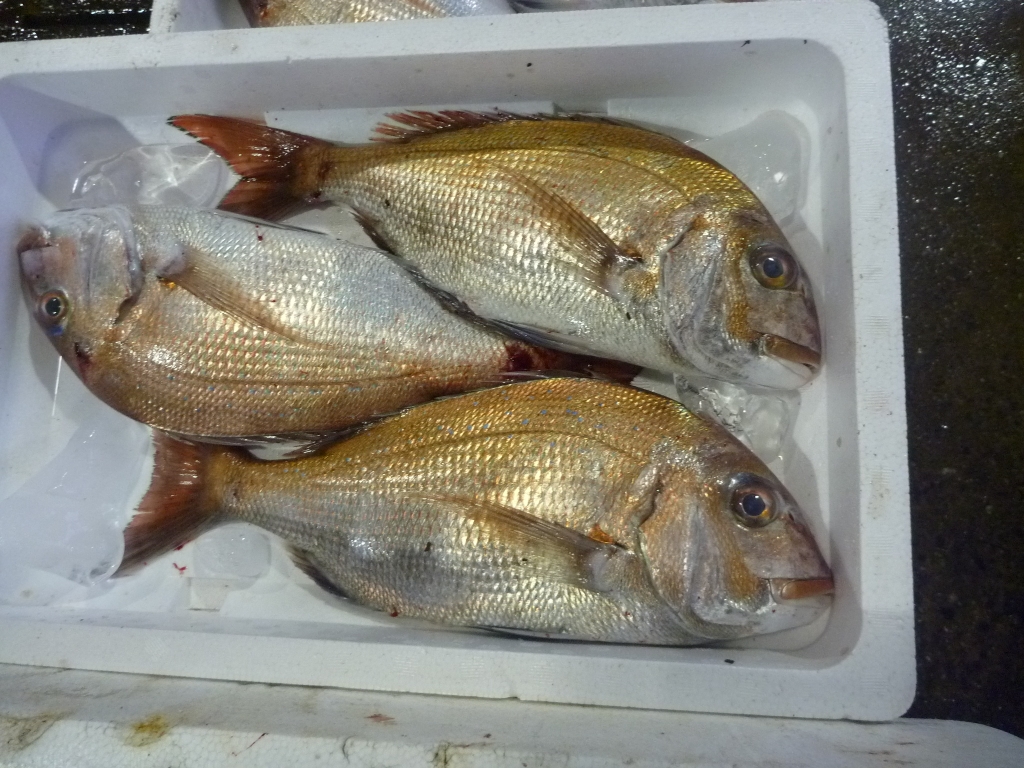 主なものは、マダイ、チヌ、ハネ、ヒラメ、ゲタ、メイタ、メバル類、キス、アイナメ、クジメ、