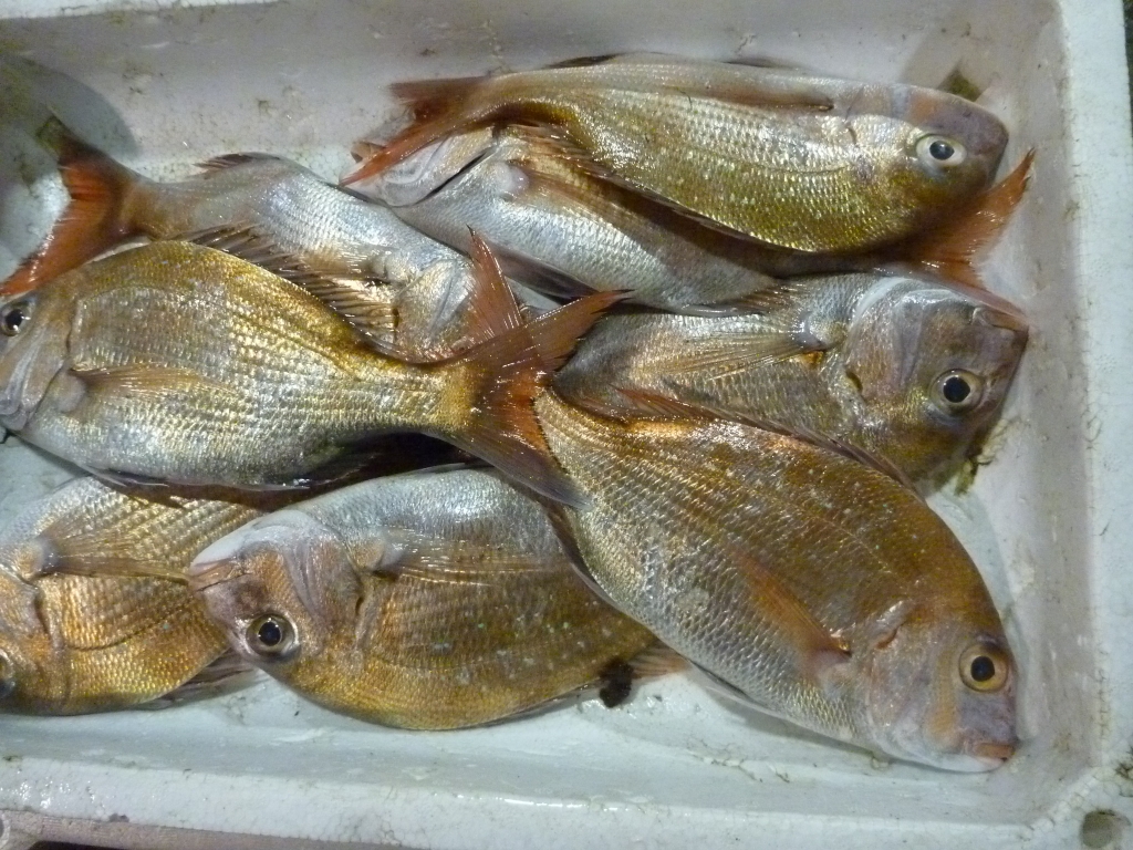 主なものは、マダコを中心にマダイ、ゲタ、メイタ、ハネ、チヌ、ヒラメ、小アジ、