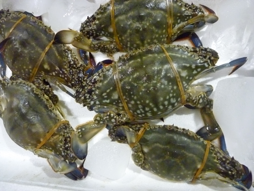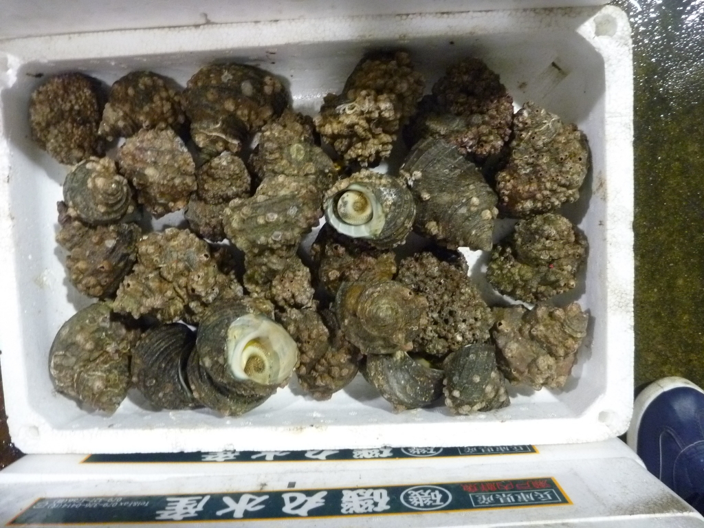 クルマエビ、ワタリガニ、サザエ、ニシ貝等です。