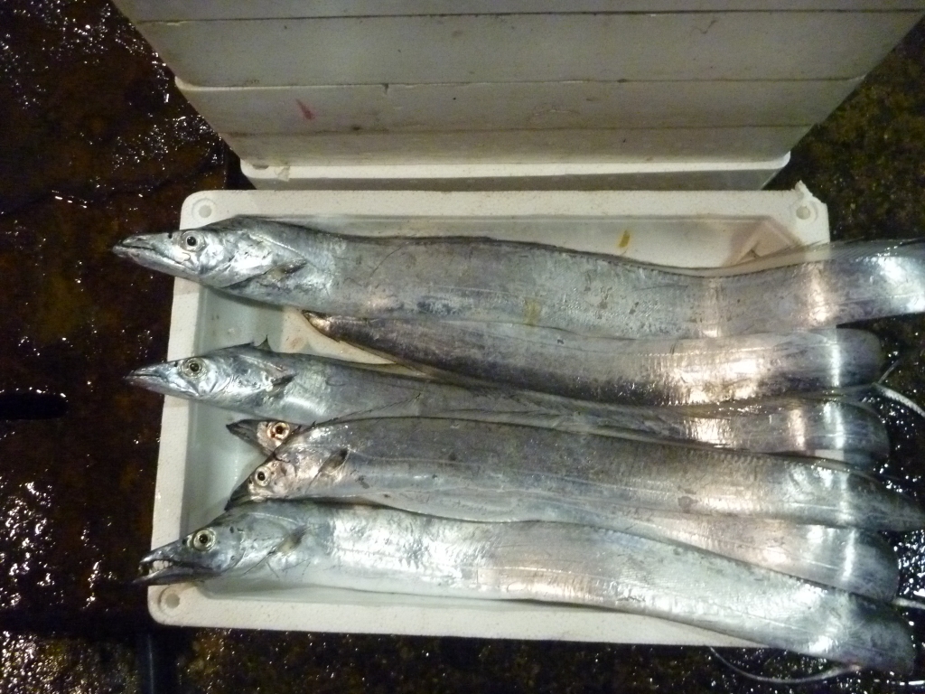 コノシロ、タチウオ、タナゴ、ニベ、アナゴ、アカエイ、イイダコ、ハリイカ、