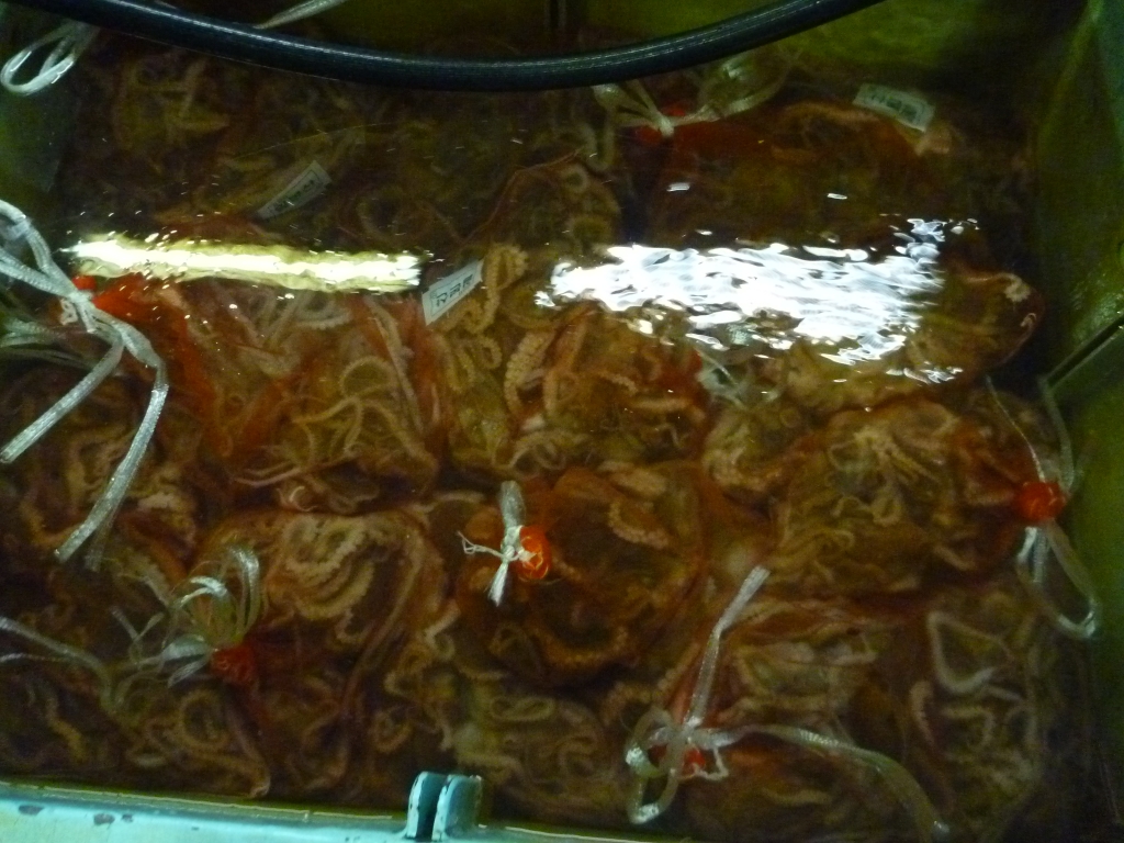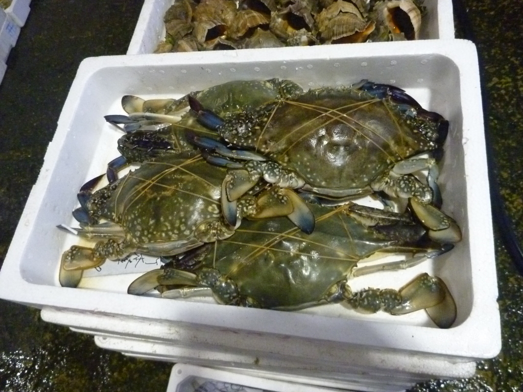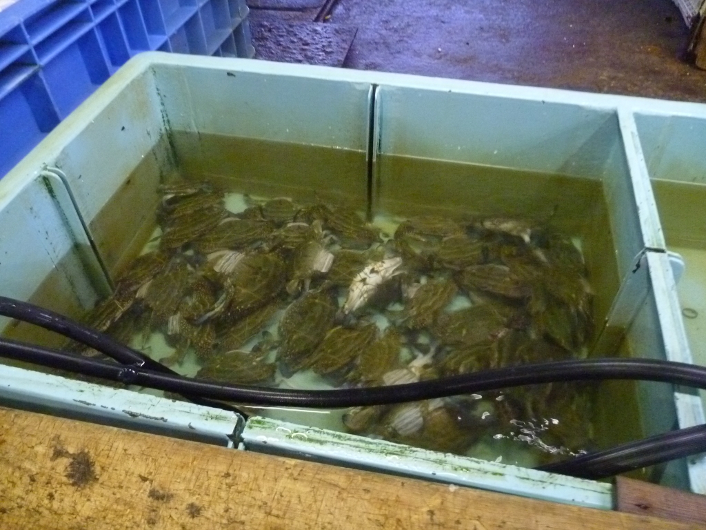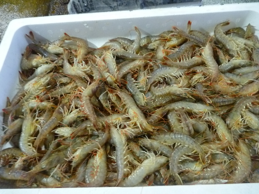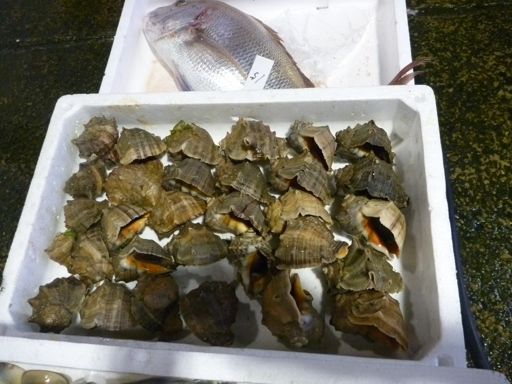ベイカ、スルメイカ、小エビ、ワタリガニ、ニシ貝等です。