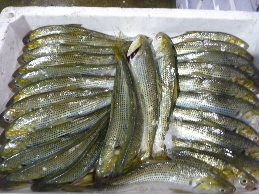 主なものは、サワラ、マダイ、コノシロ、チヌ、ハネ、ヒラメ、ゲタ、メイタ、ナシフグ