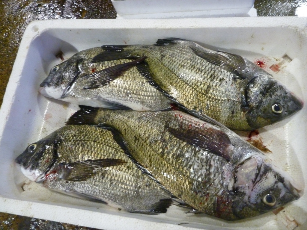 主なものは、マダイ、チヌ、ゲタ、メイタ、ヒラメ、メバル類、キス、オコゼ、ニベ,