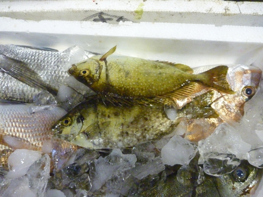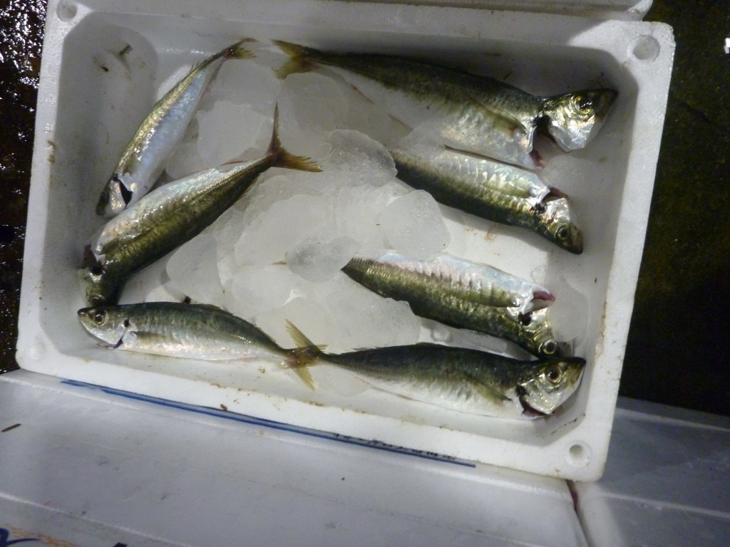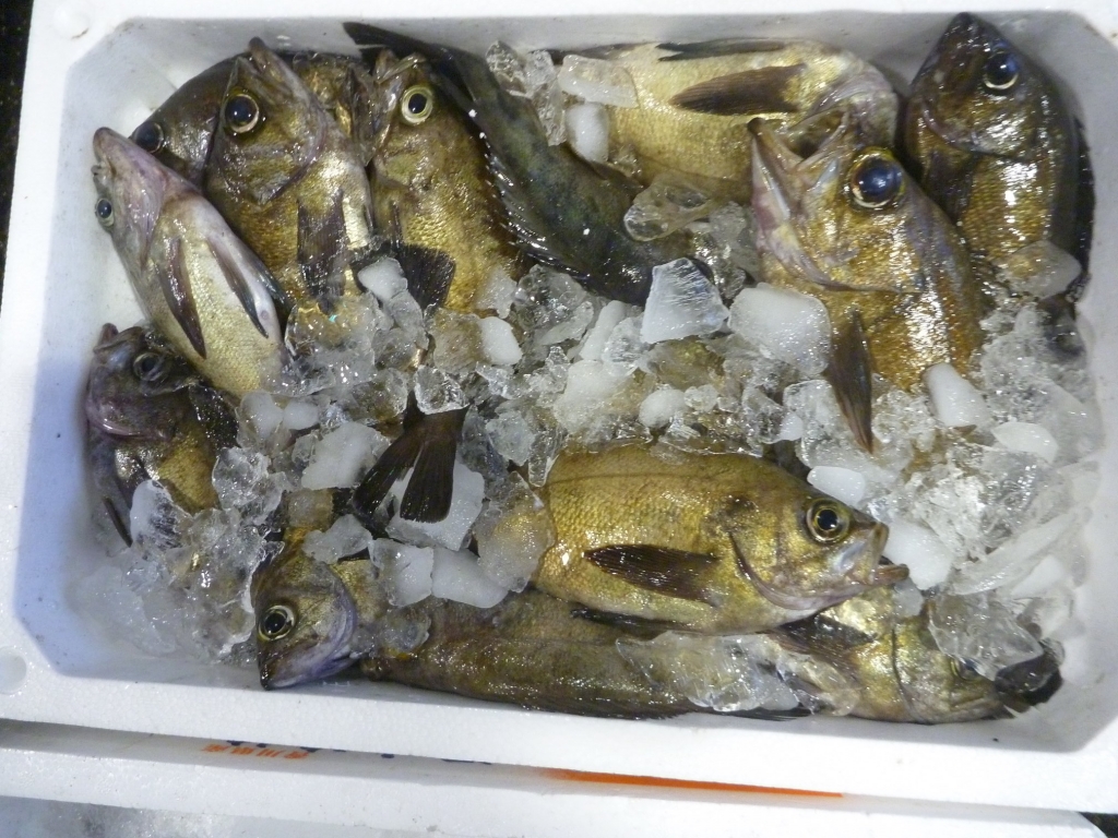 マルアジ、マナガツオ、アカエイ、アナゴ、マダコ、ハリイカ、ベイカ、小エビ、