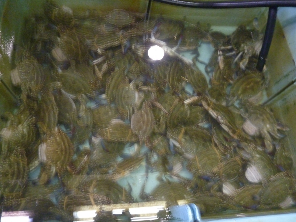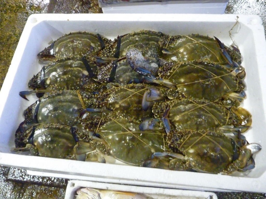 ワタリガニ、ニシ貝等です。