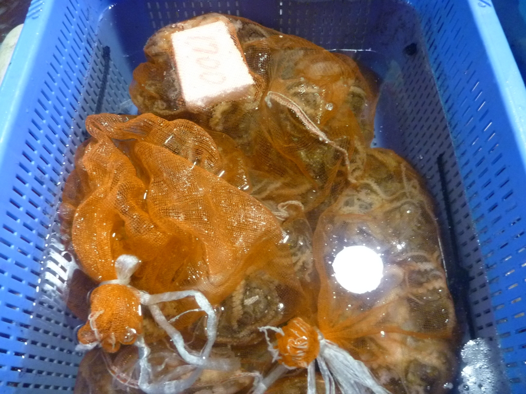 ナマコ、アワビ、サザエ等です。