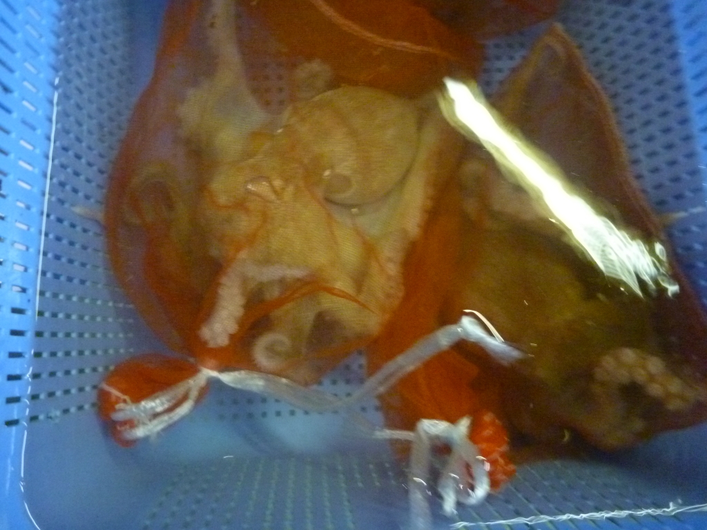 主なものはマダコ、小エビを中心にマダイ、チヌ、ゲタ、メイタ、キス、コチゴ、メバル類、