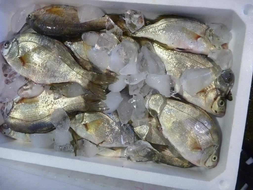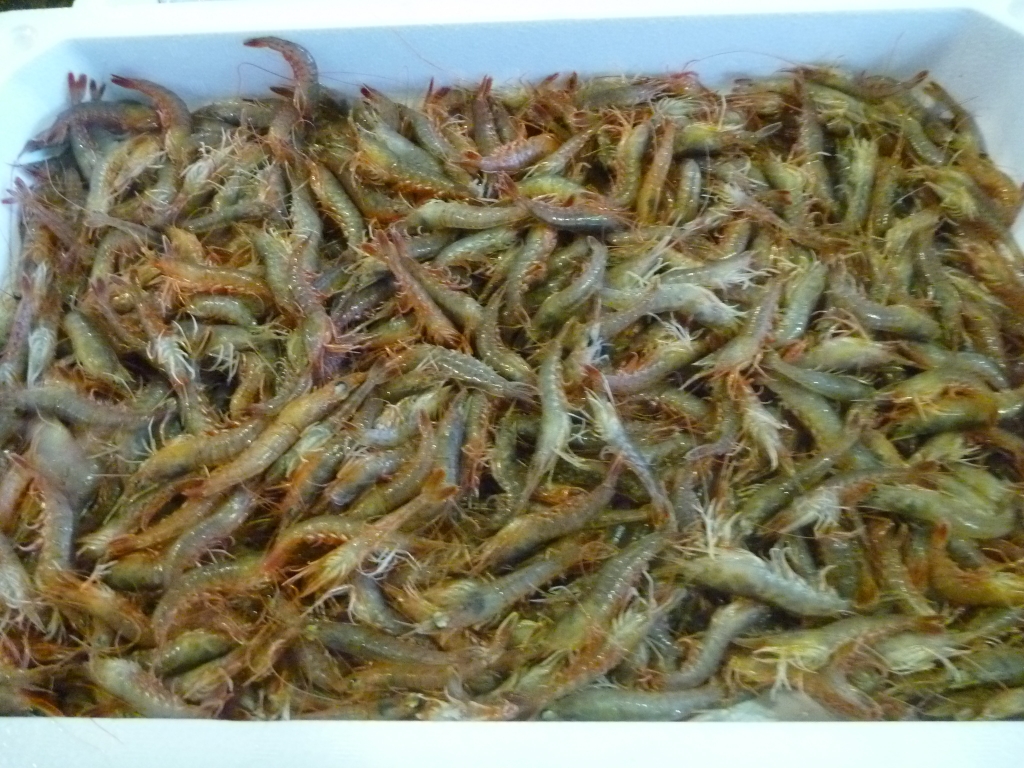 ベイカ、小イカ、クルマエビ、モエビ、シラサ、ワタリガニ、イシガニ、ニシ貝等です。