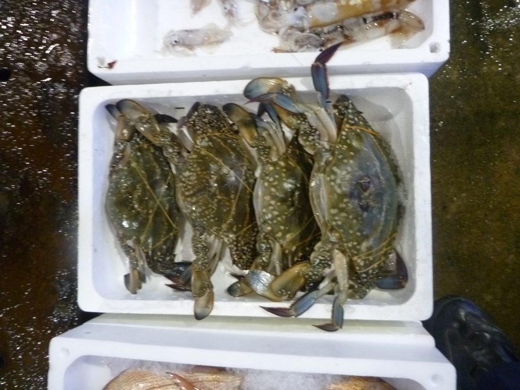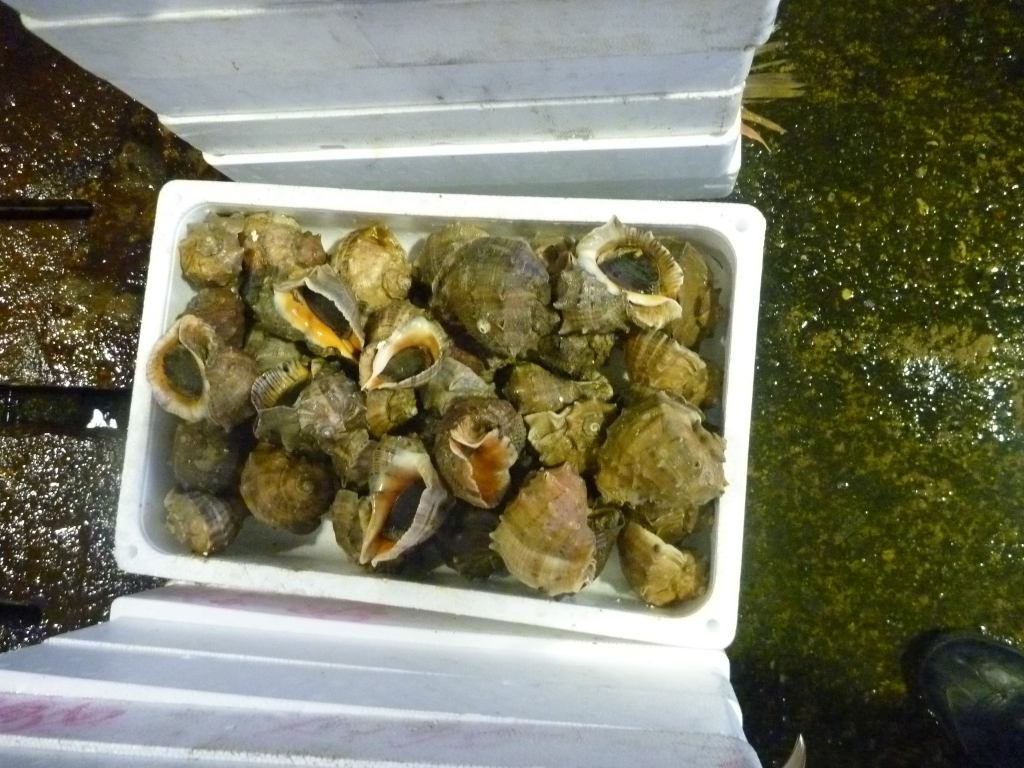 小エビ、ワタリガニ、ニシ貝等です。
