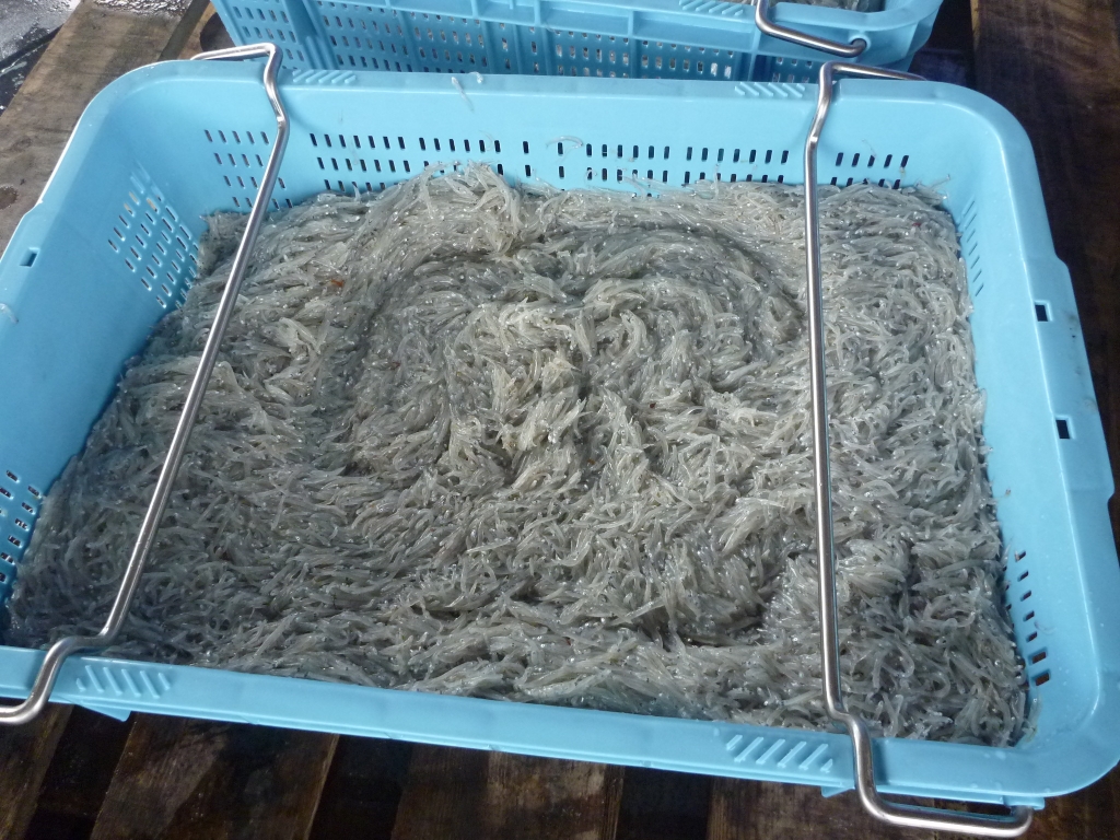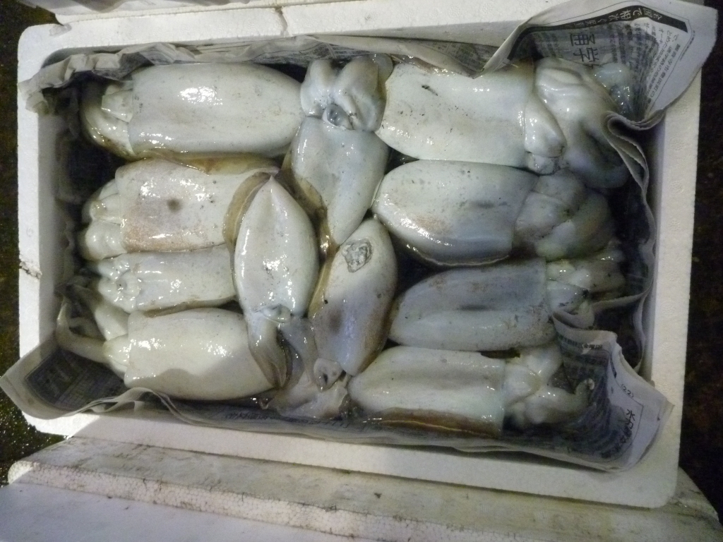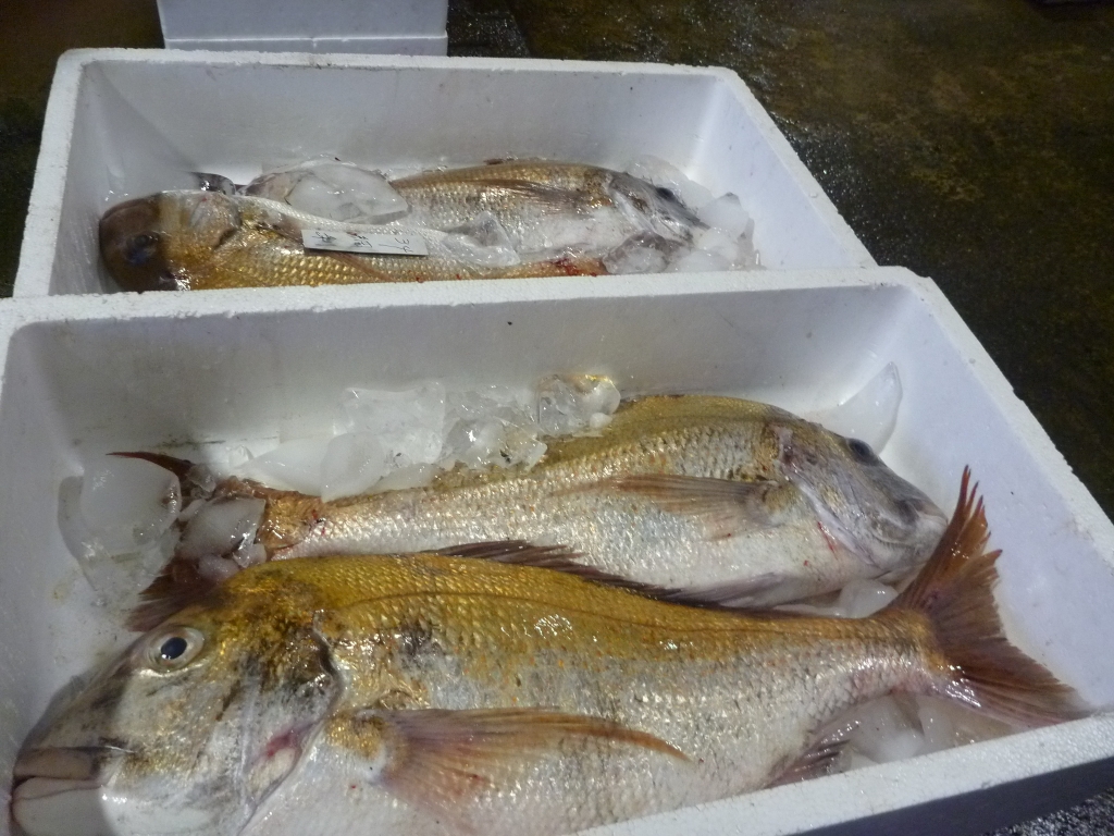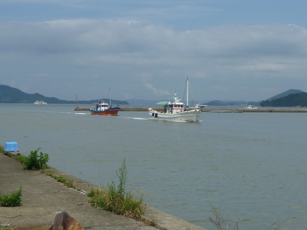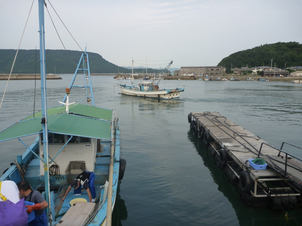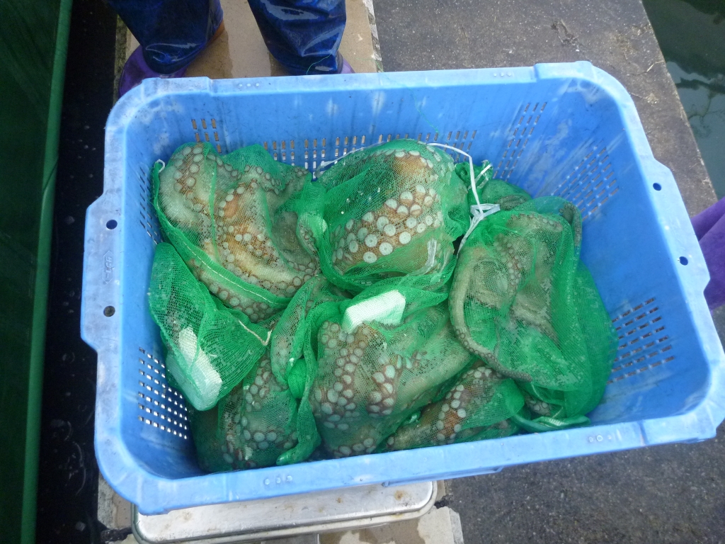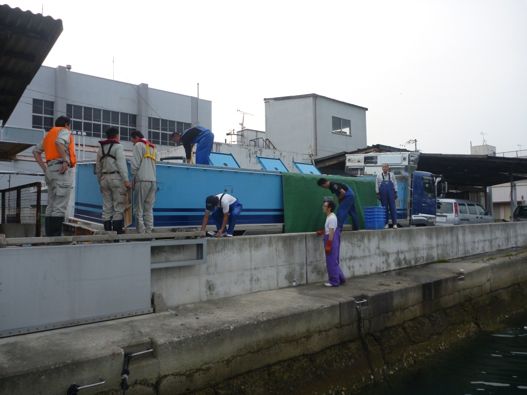 産卵用親ダコの放流長崎からタコを運んできたトラック今朝は、長崎から産卵用の親ダコが活魚トラックで到着しました。1kgサイズのものが1トン程です。放流用マダコさっそく5隻の漁船に移し替え放流に出てゆきました。放流に向かう漁船今年は、今のところややマダコは少ないような気配です。今放流しているマダコは、やがて産卵して、小ダコが生まれますが、このタコが成長して漁業者が漁獲対象にするのは、来年のことです。来年は、マダコが豊漁であることを期待しています。市場情報今朝の市場への入荷は、順調です。主なものは、マダイ、チヌ、ハネ、ヒラメ、メイタ、ゲタ、メバル類、キス、ヒラ、オコゼ、小フグ、ニベ、アナゴ、マダコ、ハリイカ、モンゴウイカ、ミズイカ、ベイカ、小エビ、ワタリガニ、ニシ貝等です。しらす情報水揚げに向かうこまし網漁船昨日は18隻が出漁して、5.7トン程の漁獲がありました。漁はまだまだ少なめですが、価格は、高値が出ています。昨日漁獲されたシラスシラス漁もだんだん本格化してきます。今年は、例年より遅れてのスタートになりましたが、今後の好漁を期待しています。