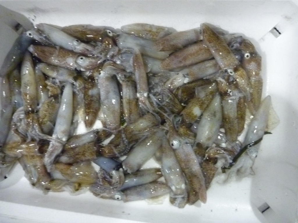 イイダコ、ベイカ、小エビ、ワタリガニ、ニシ貝、タチガイ等です。