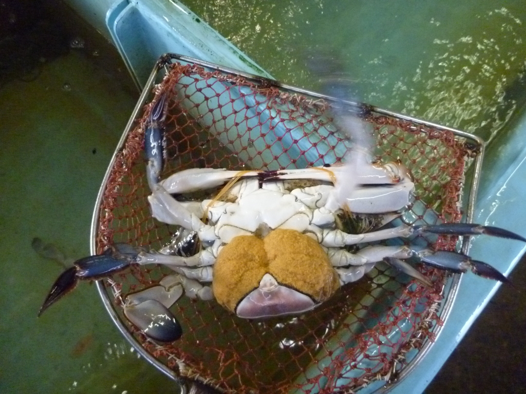 今朝の市場の水槽に、この抱卵ガザミがいます。