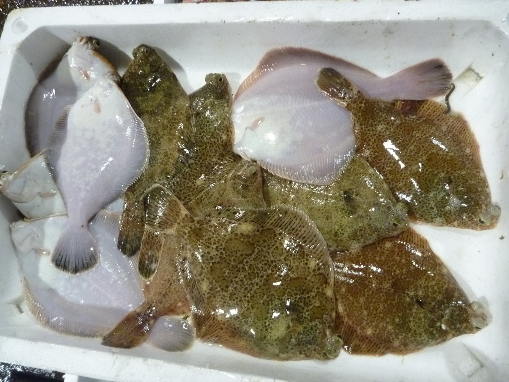 主なものは、マダイ、チヌ、ハネ、ヒラメ、メイタ、ゲタ、メバル類、キス、コチゴ、