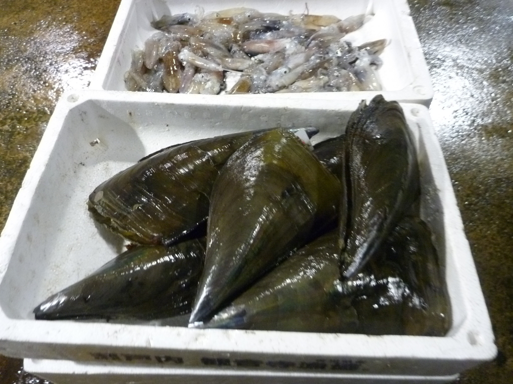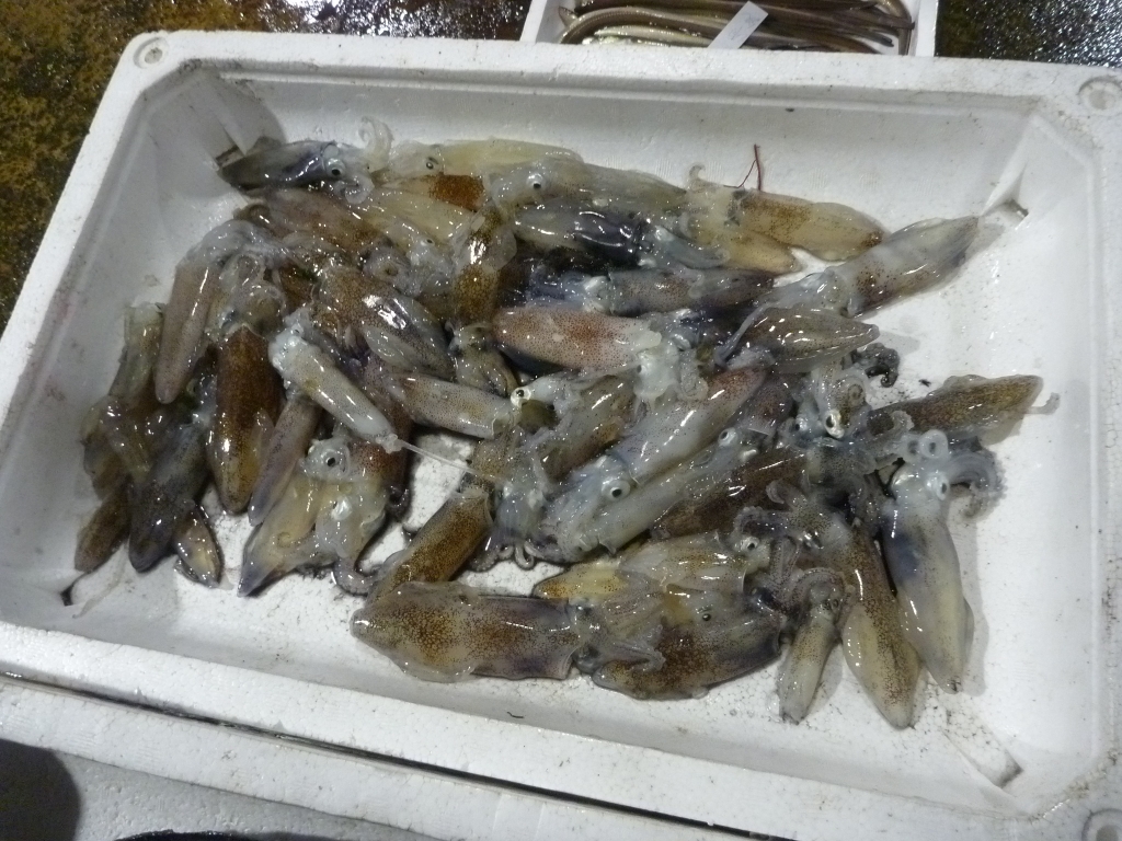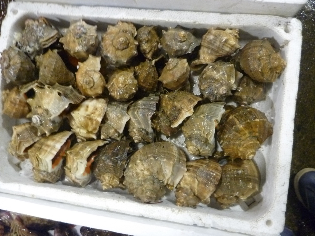 アナゴ、イイダコ、ベイカ、小エビ、タチガイ、ニシ貝、ナマコ等です。