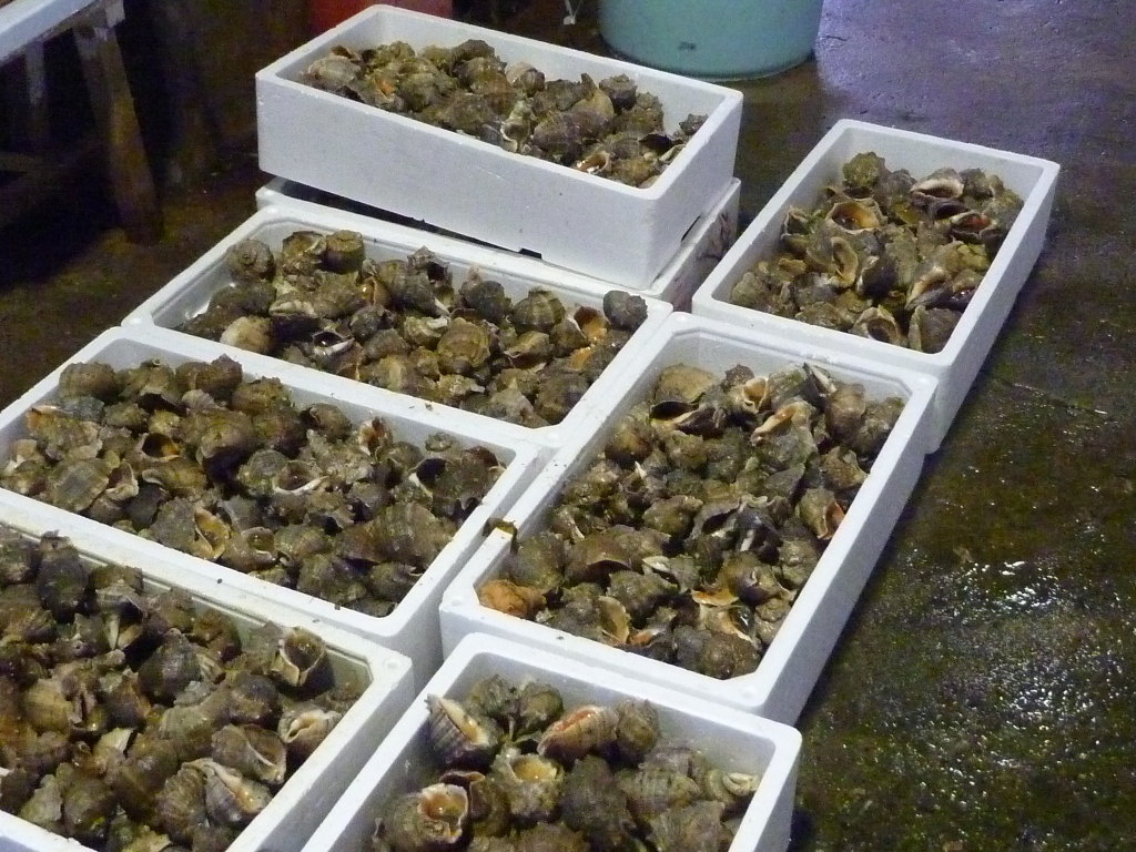 アカエイ、マダコ、ハリイカ、ベイカ、小エビ、ワタリガニ、クルマエビ、