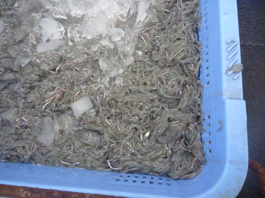 イカナゴ新子の成長は早く、もうくぎ煮を炊くのに最適サイズの4cmになっています。