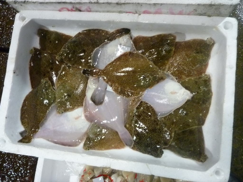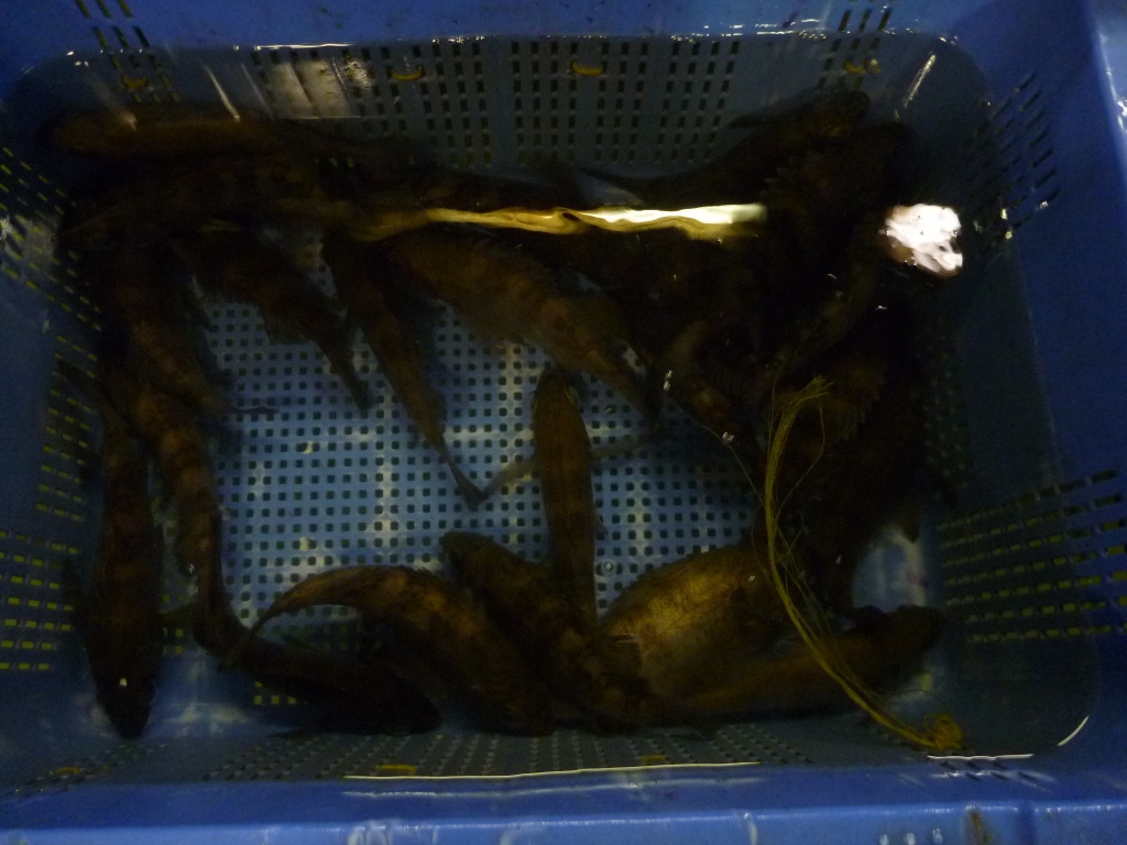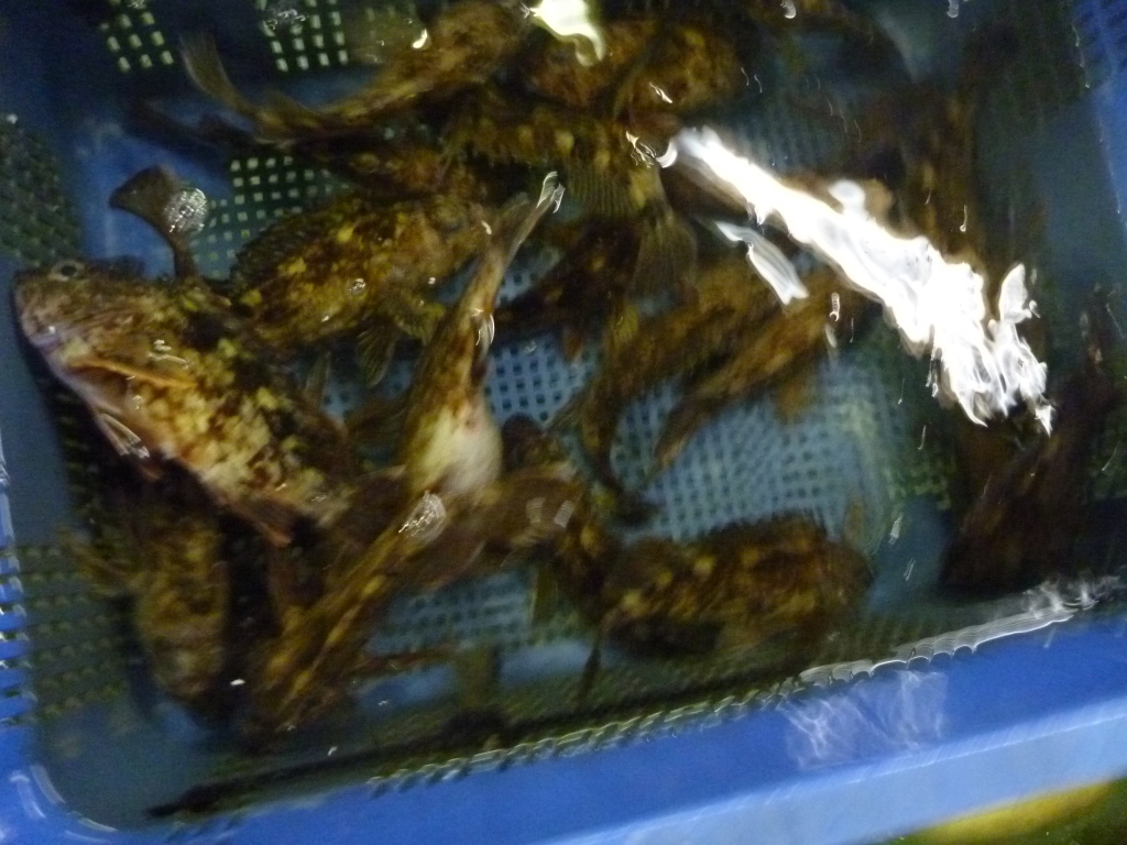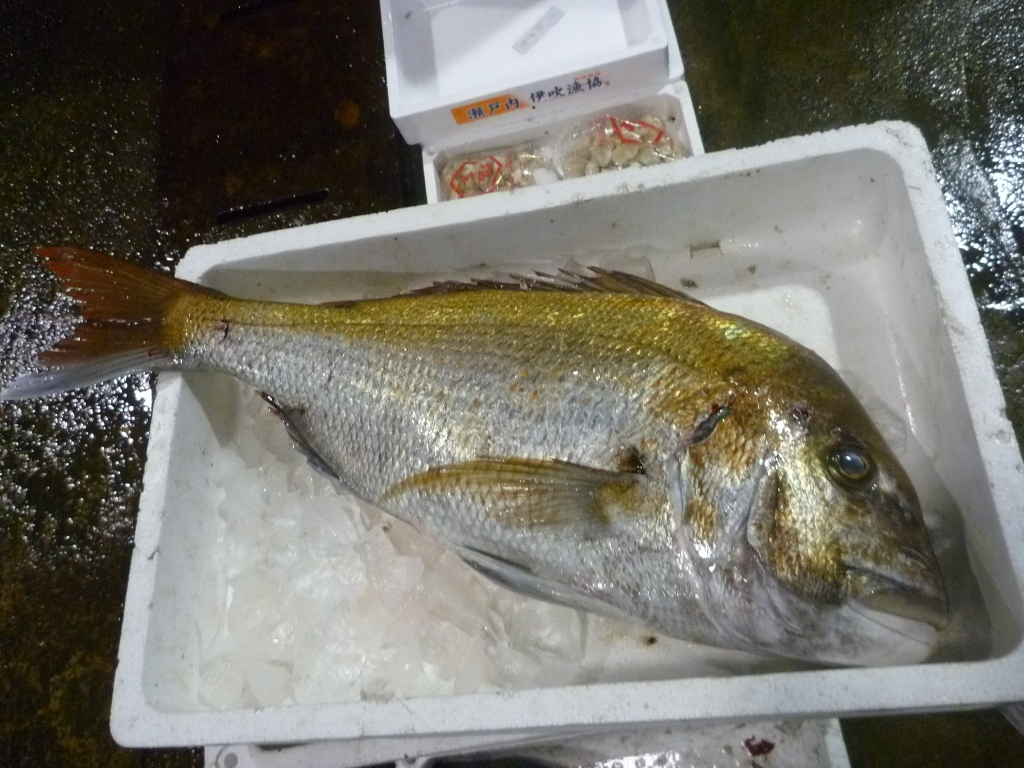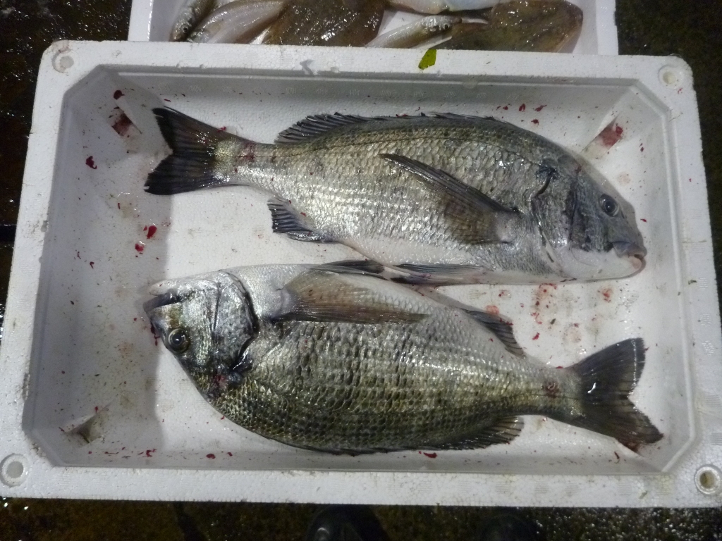 今朝の市場の漁獲物では、底引きのクロダイ、釣りのクロメバル、