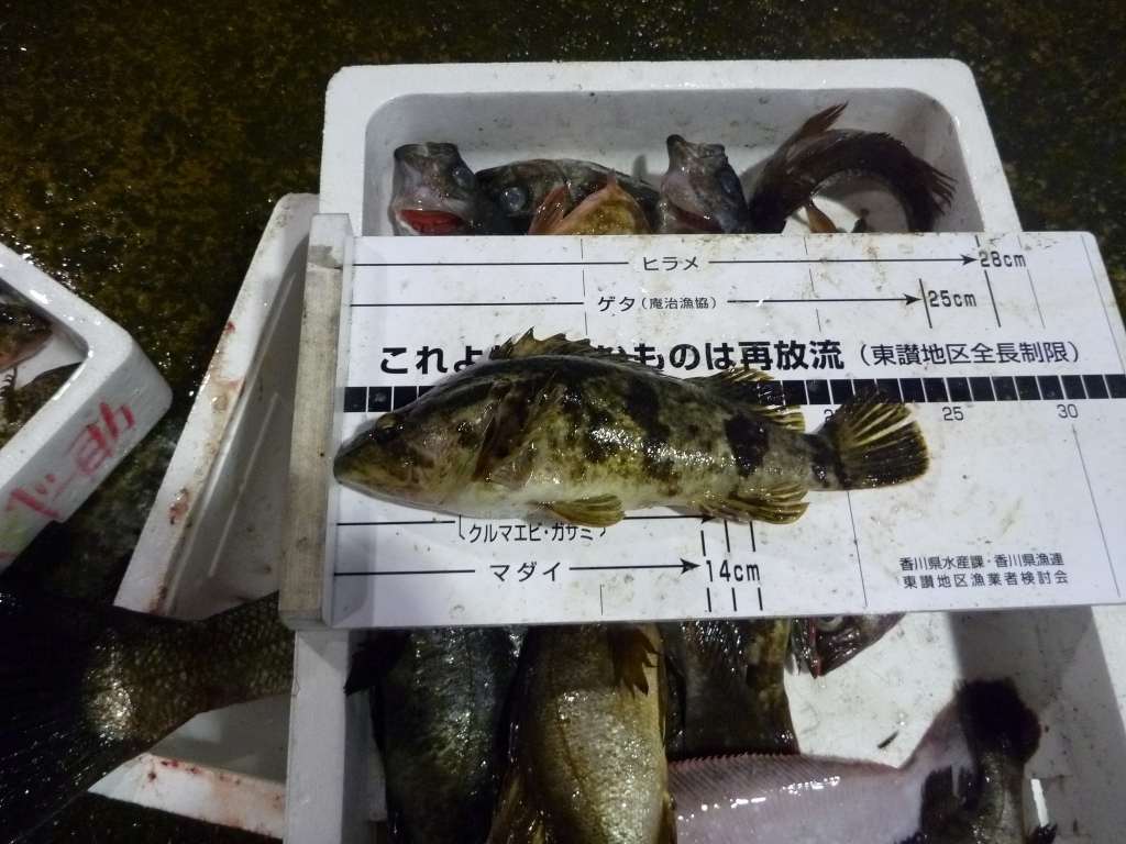 主なものは、マダイ、メイタ、チヌ、ハネ、ヒラメ、メバル類、タナゴ、ゲタ、