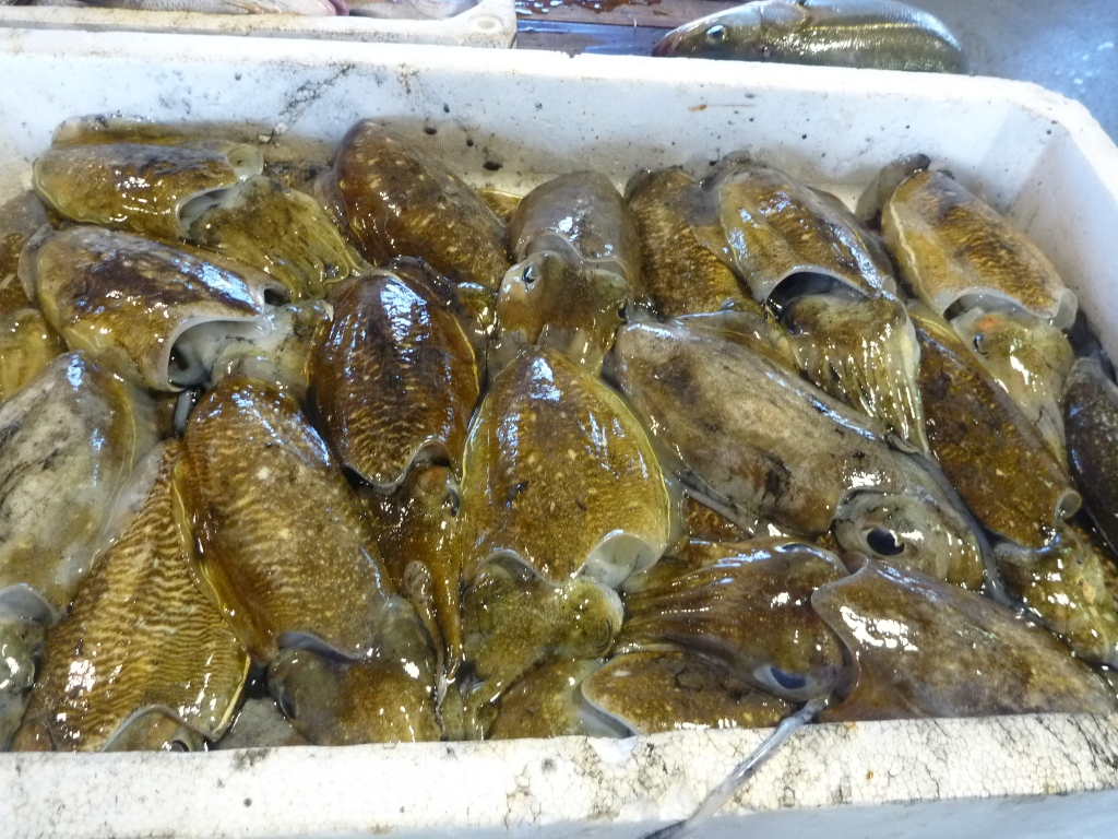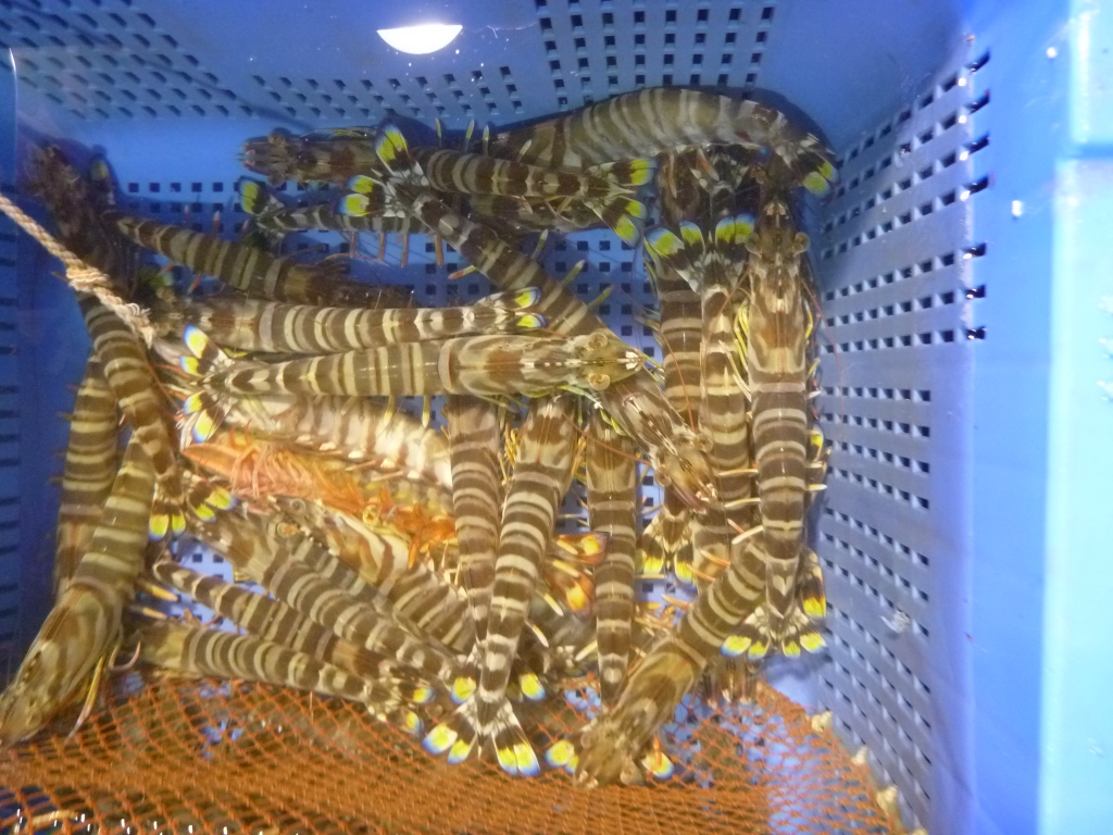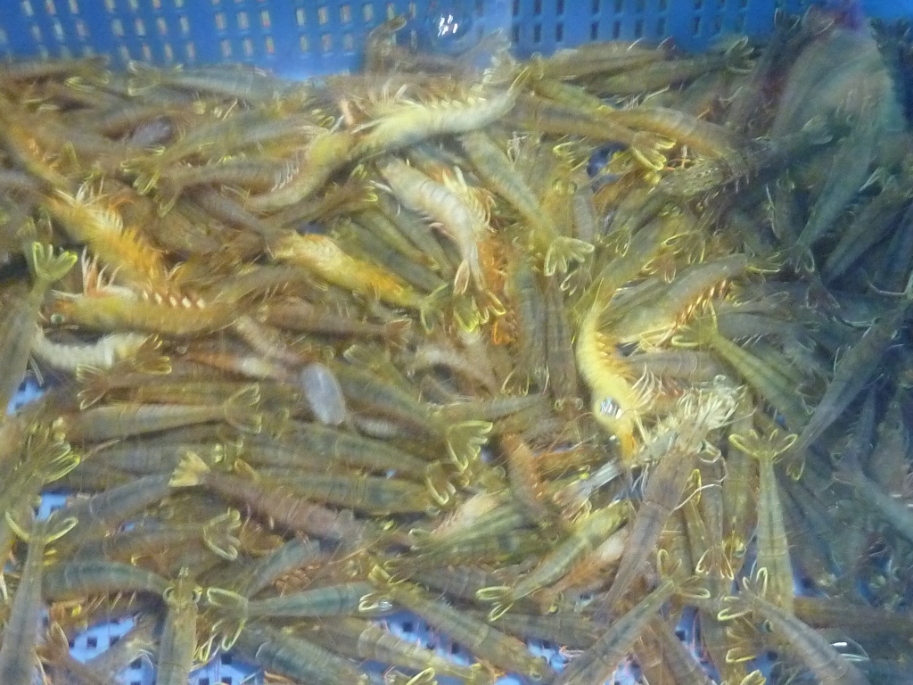 小エビ、マダコ、メイタ、クルマエビ、ワタリガニ、マダイ等です。