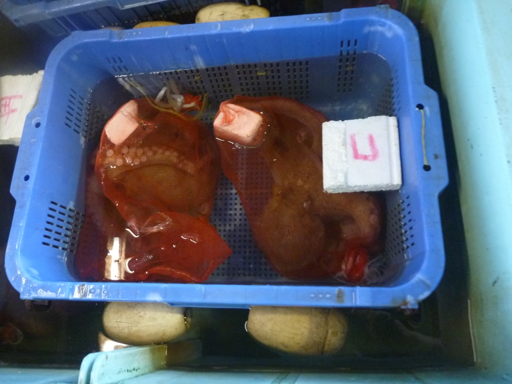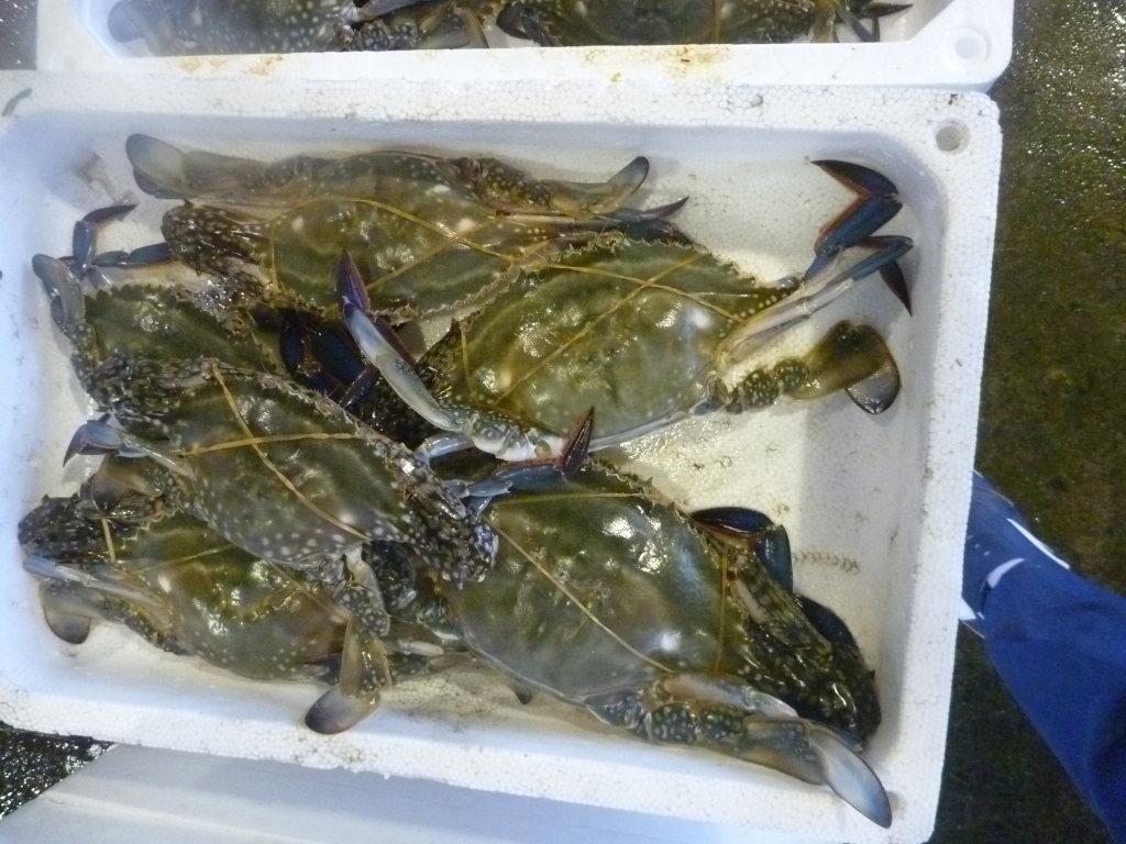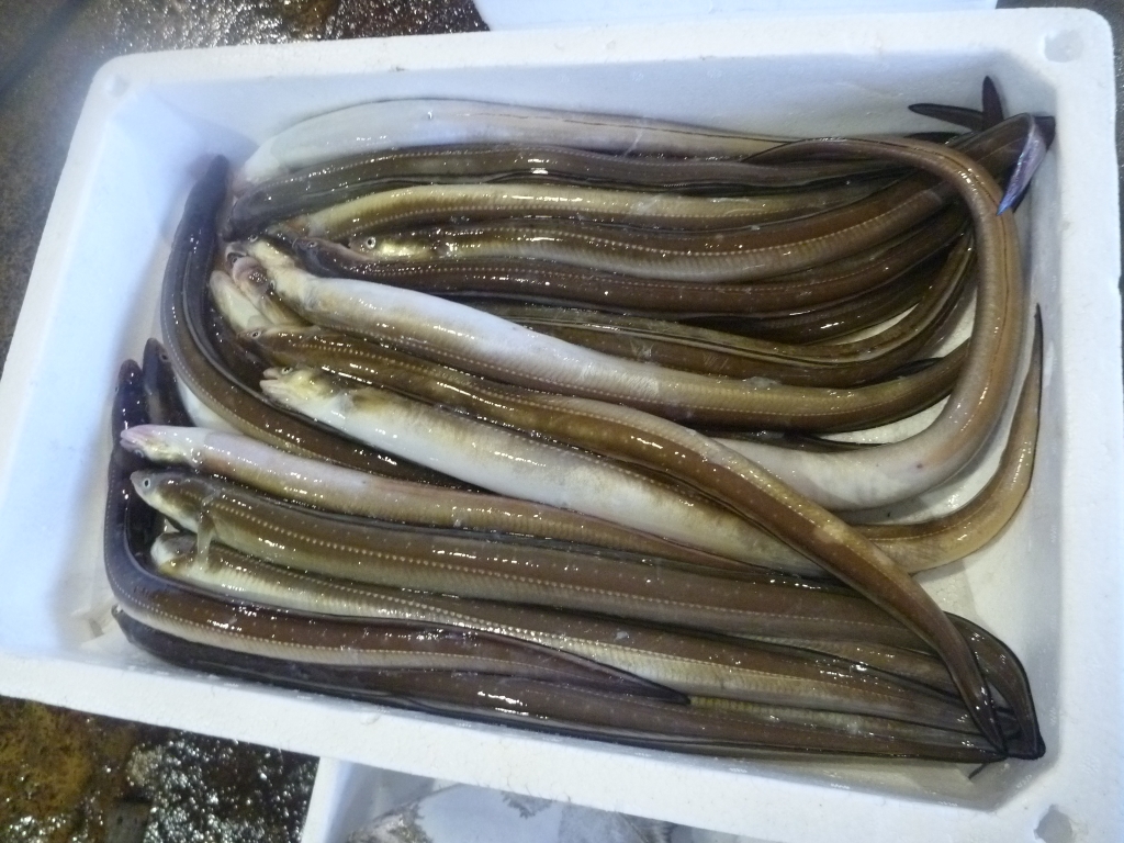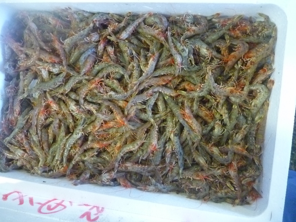 ニベ、アナゴ、マダコ、ベイカ、小エビ、ワタリガニ、ニシ貝等です。