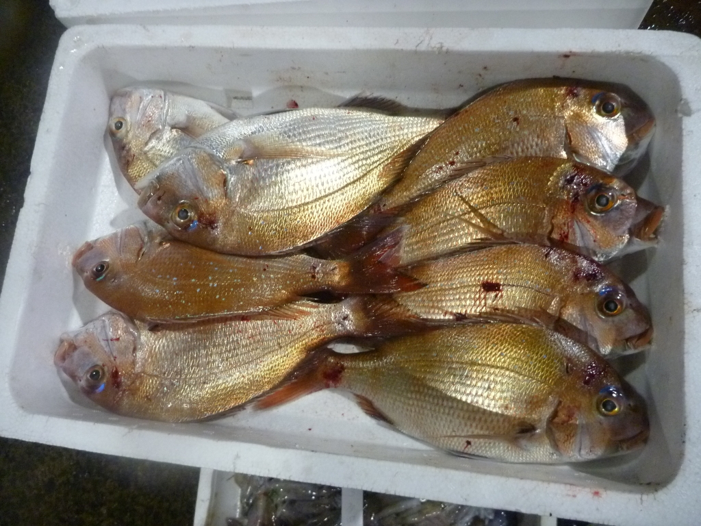 主なものは、マダイ、チヌ、ヒラメ、ハネ、ゲタ、メイタ、