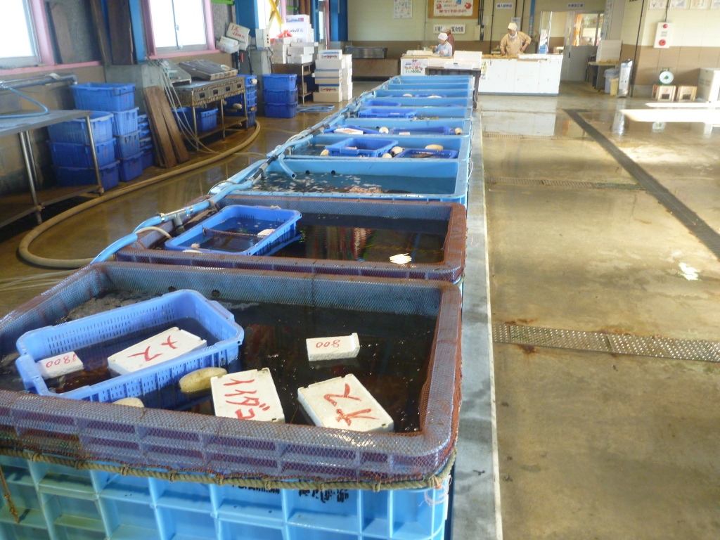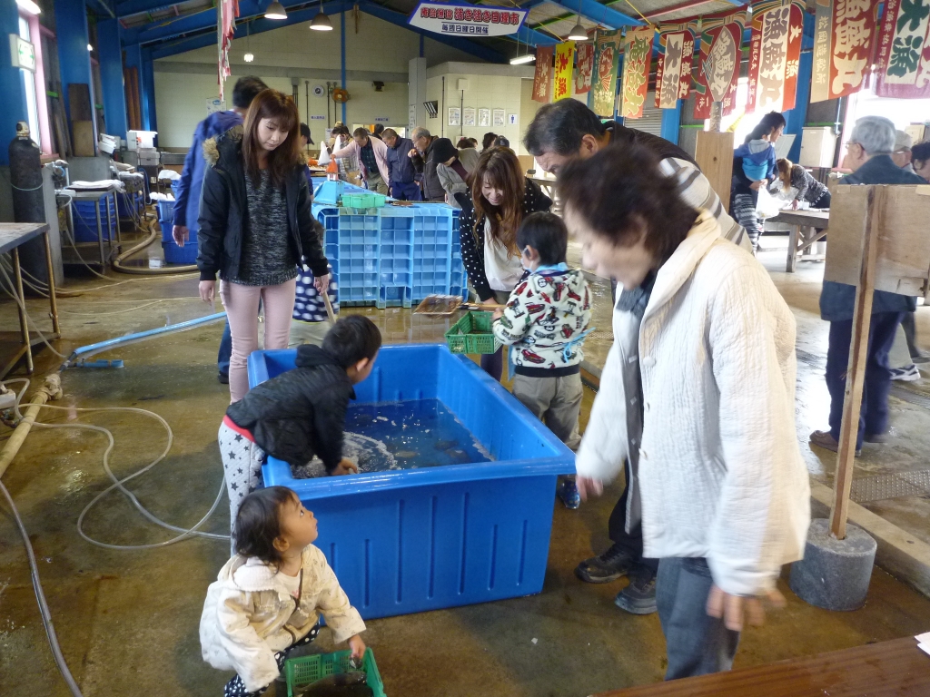 マダイ、ヒラメ、メイタ、オコゼ、イイダコ、小エビ、ワタリガニ等です。