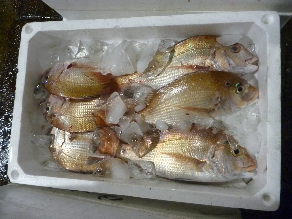 主なものは、マダイ、チヌ、ゲタ、メイタ、コフグ、マナガツオ、ベロコ、メバル類、