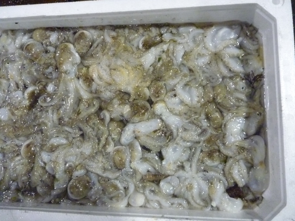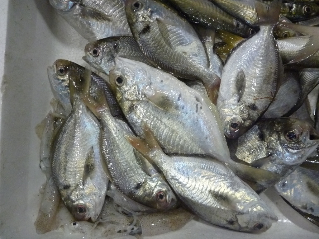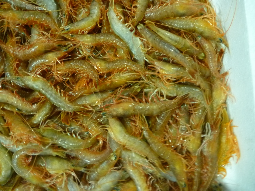 小イカ、小エビ、モエビ、クルマエビ、ワタリガニ、ニシ貝等です。