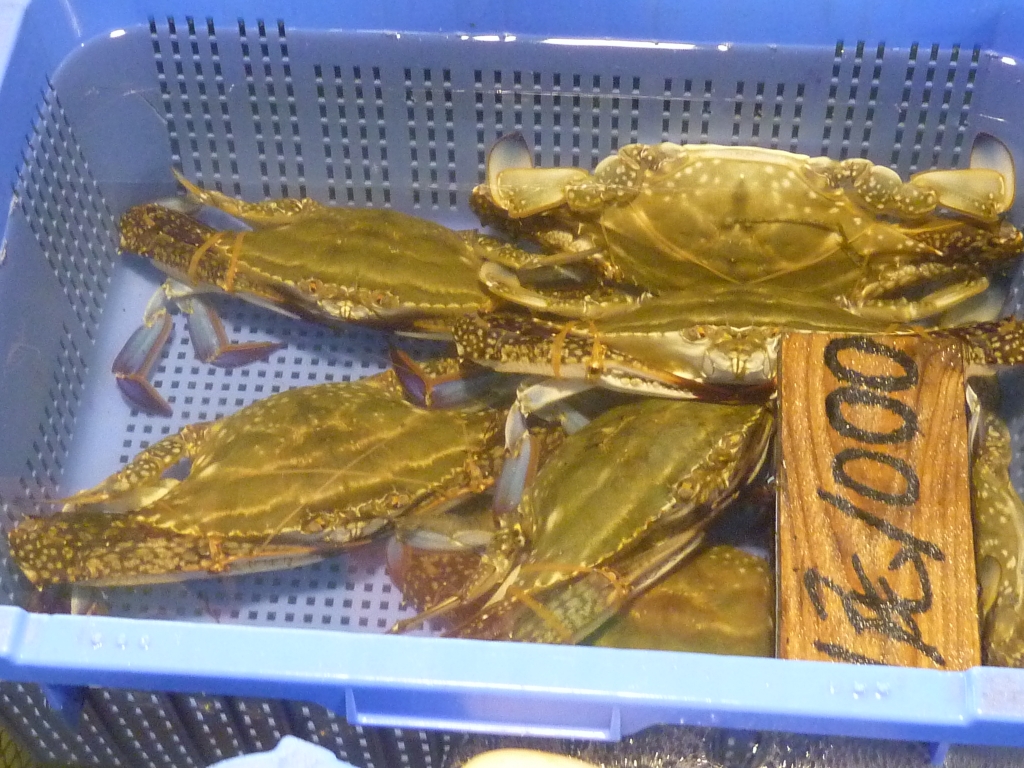 活魚コーナーメイタ、マダコ、小エビ、ワタリガニ等です。