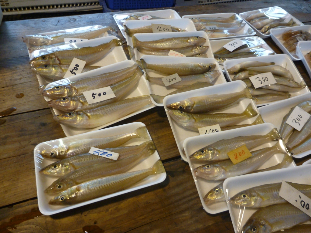 組合新商品コーナーイカナゴくぎ煮(女性部製品)、小エビ燻製等です。