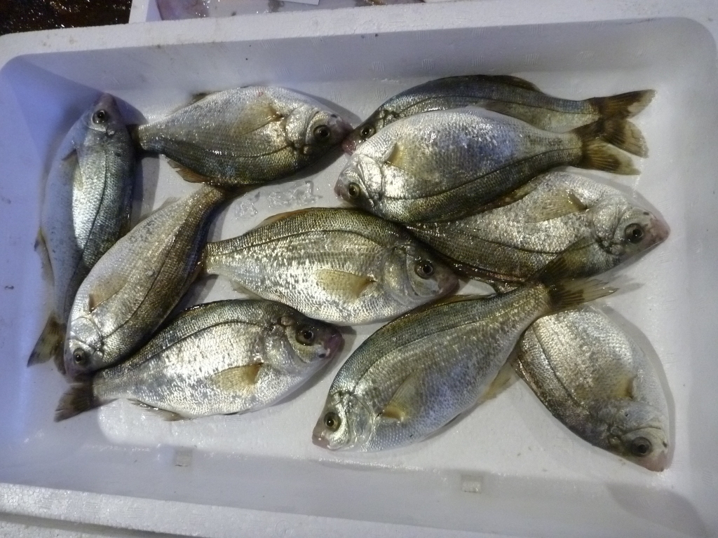 主なものは、マダイ、チヌ、メイタ、ゲタ、ヒラメ、メバル類、タナゴ、オコゼ、キス、