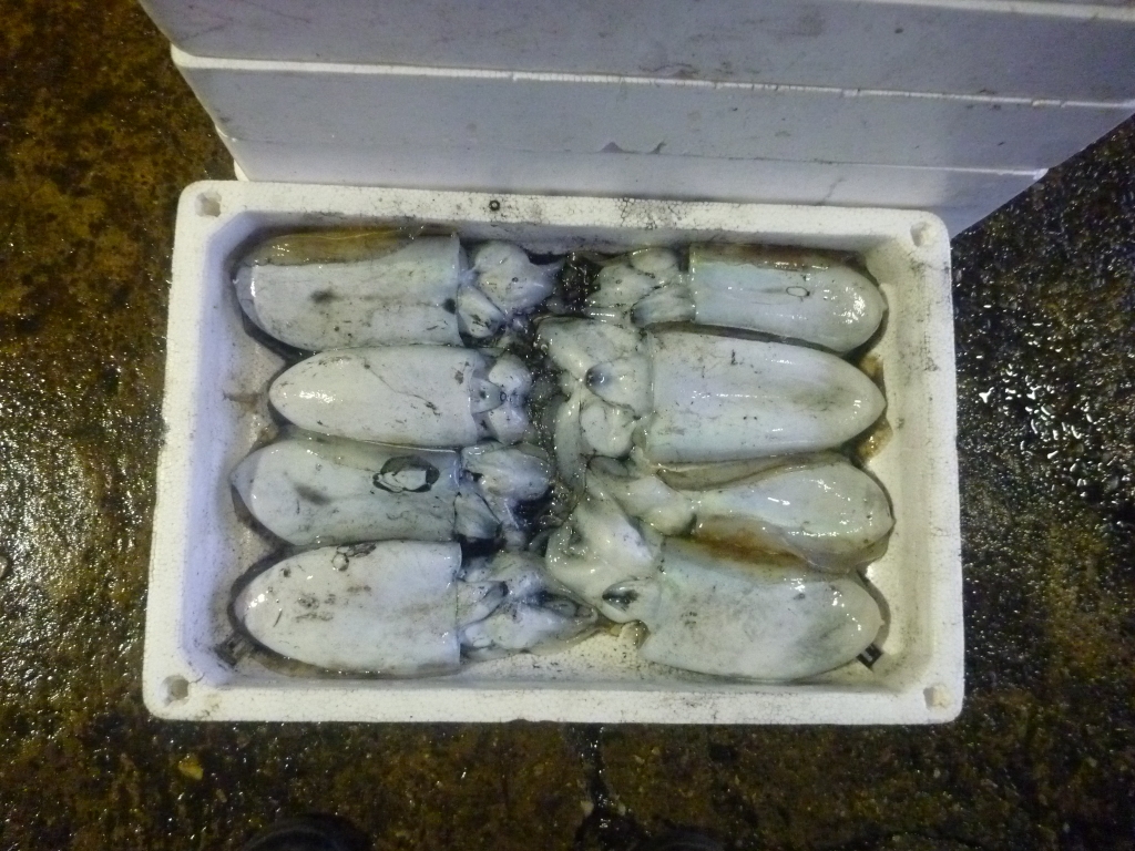 昨日は9隻の出漁で、イカが500㎏弱の水揚げです。