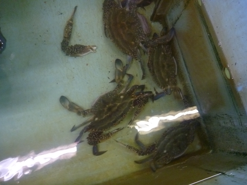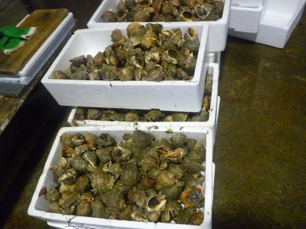 アナゴ、マダコ、テナガダコ、ハリイカ、ベイカ、スルメイカ、小エビ、ワタリガニ、ニシ貝、