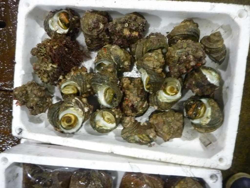 イイダコ、マダコ、ハリイカ、タチガイ、サザエ、ナマコ等です。