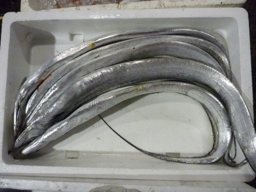 主なものは、タチウオ、タイゴ、トラバゼ、メイタ、マナガツオ、大アジ、アナゴ、