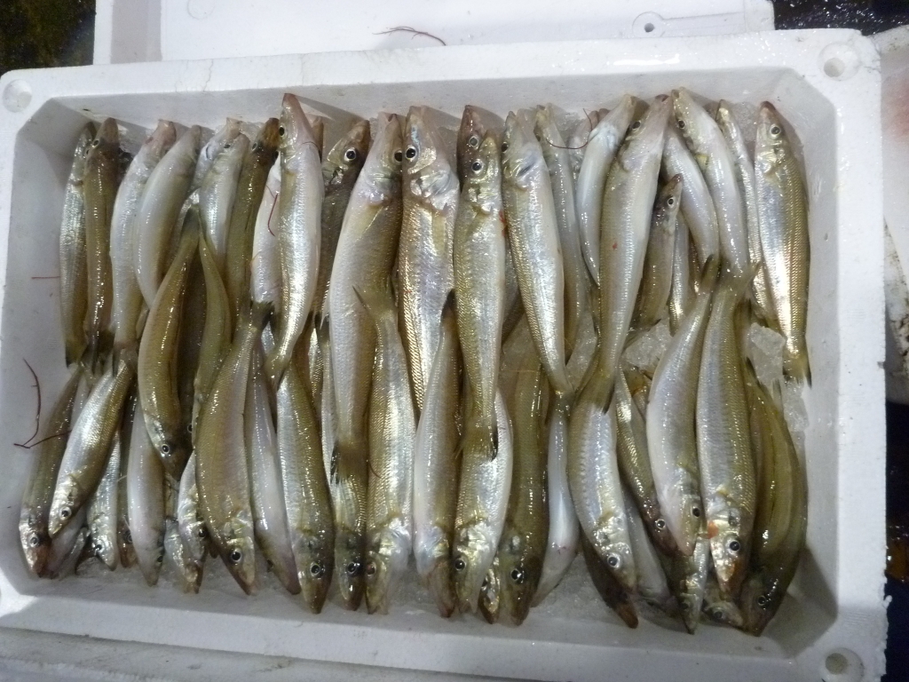 タナゴ、シマゲタ、ニベ、アカエイ、タチウオ、マダコ、イカ類、小エビ、モエビ、