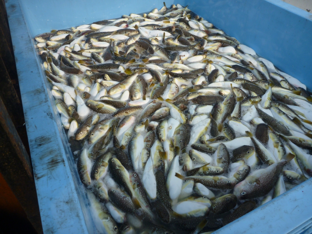 昨日は16隻出漁して、ナシフグが1.7トン、イカナゴが4,4トンの水揚げがありました。