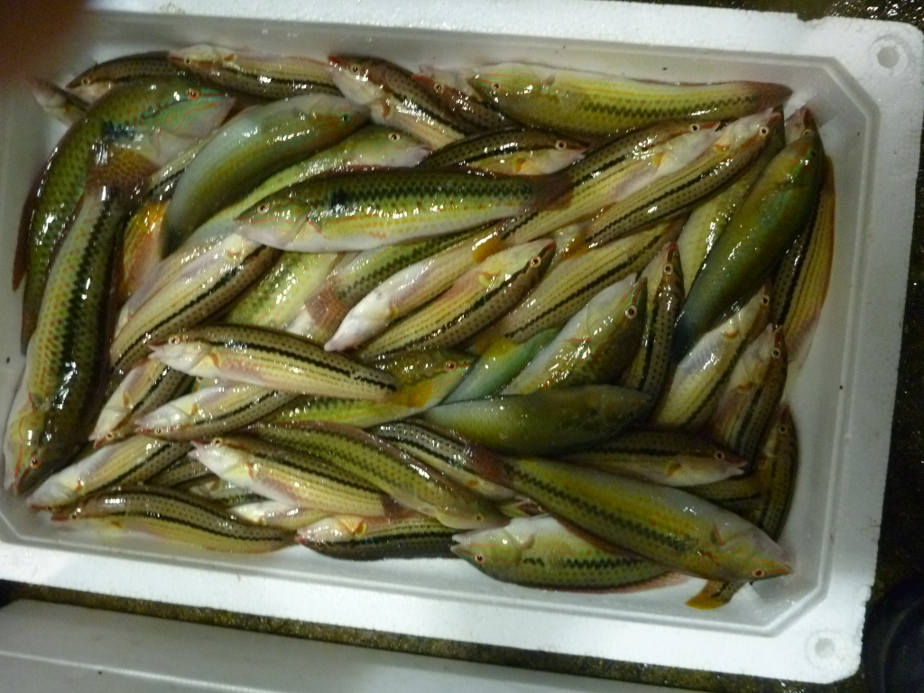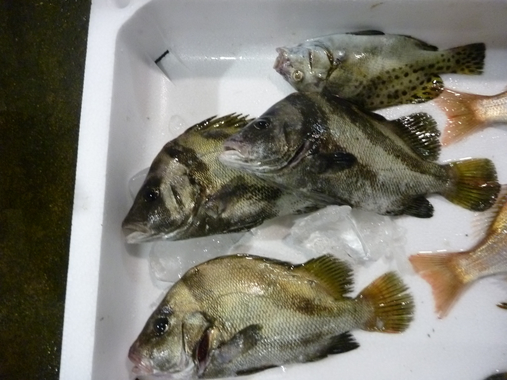 ベロコ、チヌ、ハネ、ヒラメ、小アジ、マナガツオ、マルハギ、サヨリ、シマゲタ、ニベ、アナゴ、