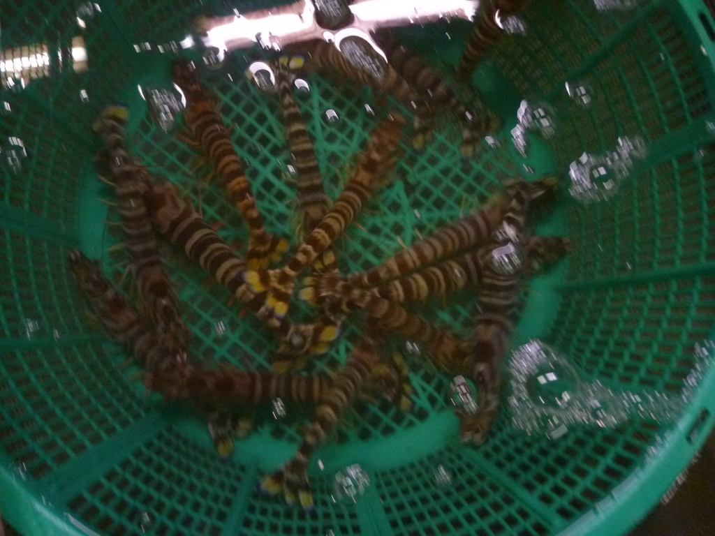 イイダコ、小イカ、ミズイカ、ベイカ、クルマエビ、モエビ、ワタリガニ、ニシ貝等です。