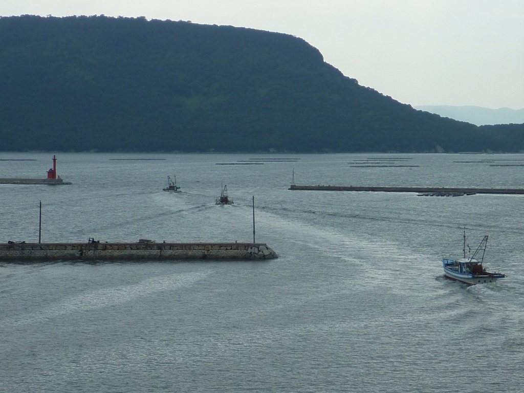出航していく底引き網漁船