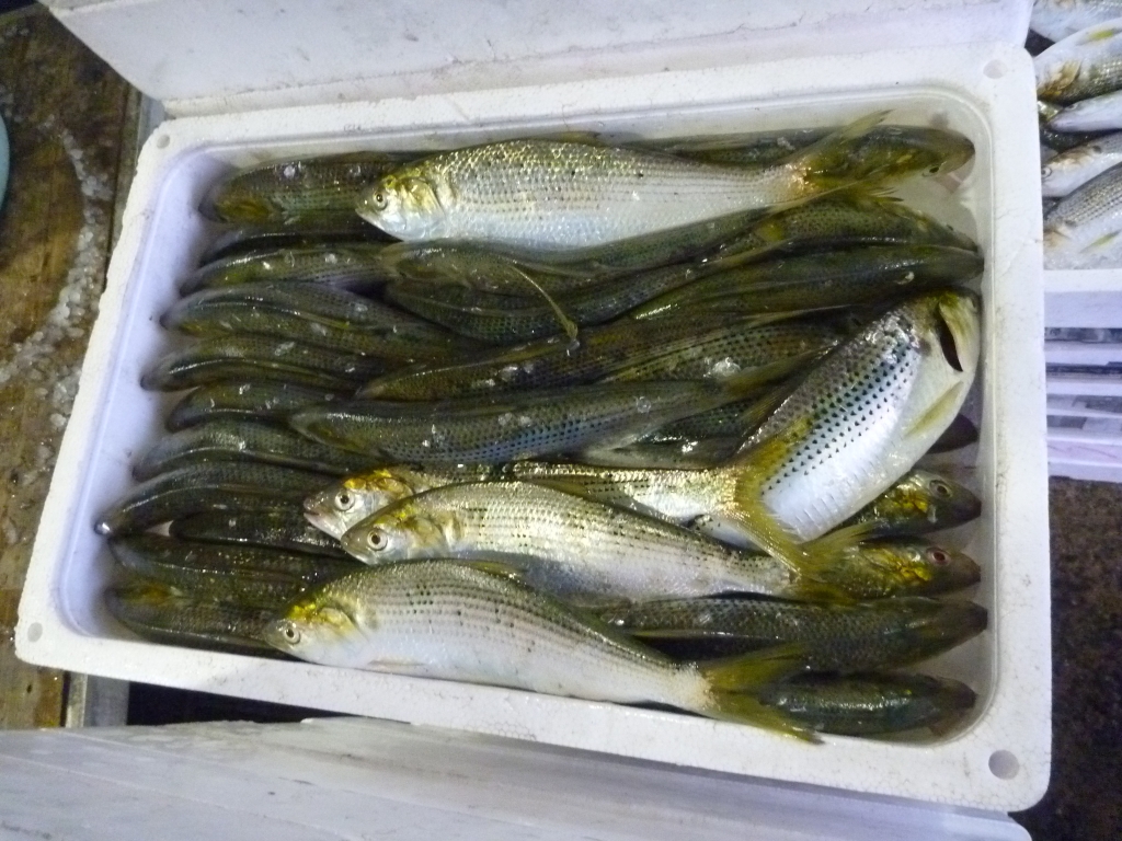 主なものは、サワラ、マダイ、チヌ、オコゼ、メイタ、ゲタ、コノシロ、メバル類、フグ類、
