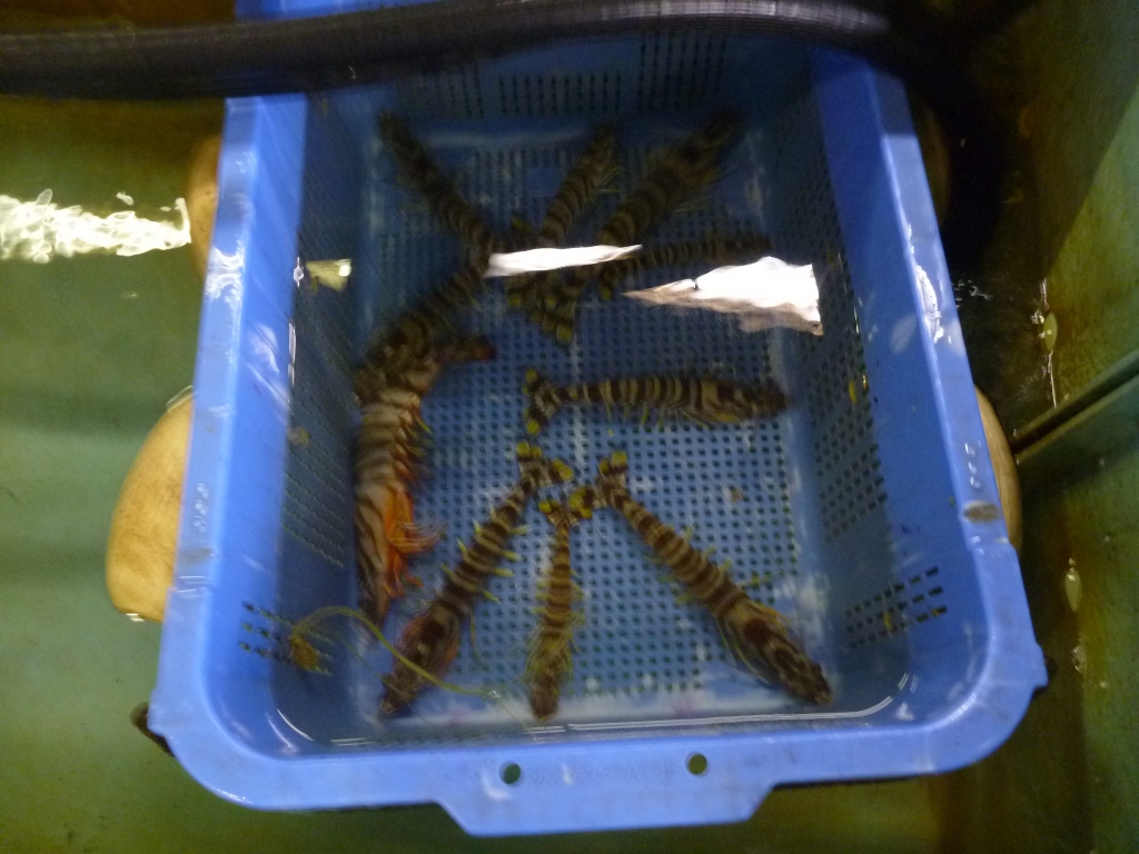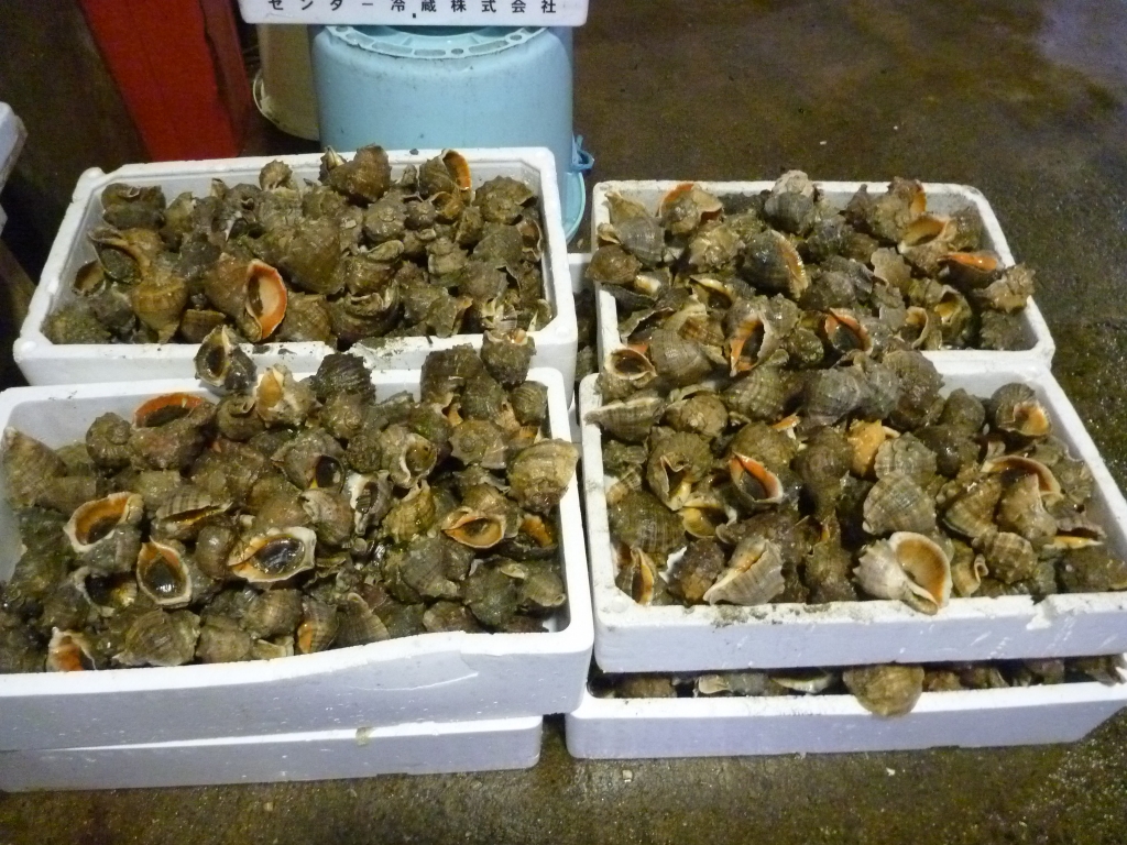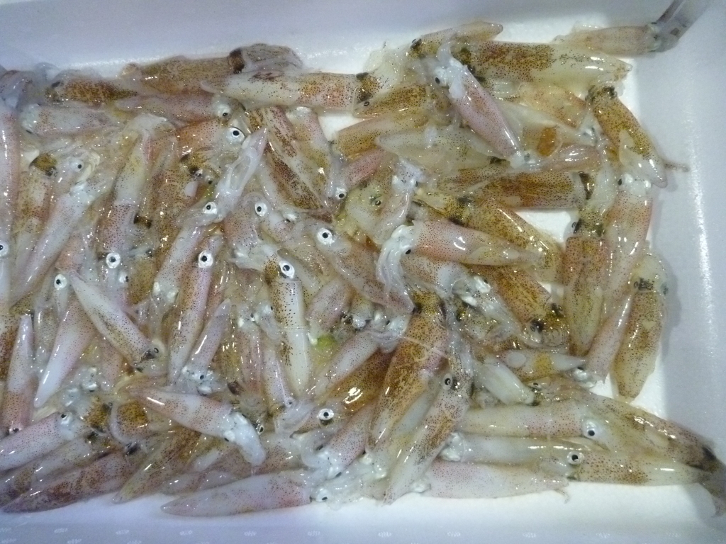 ベイカ、スルメイカ、小エビ、クルマエビ、ワタリガニ、タチガイ、ニシ貝等です。